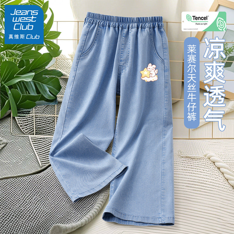 真维斯club女童牛仔裤宽松阔腿2025新款中大童春夏洋气薄款裤子女