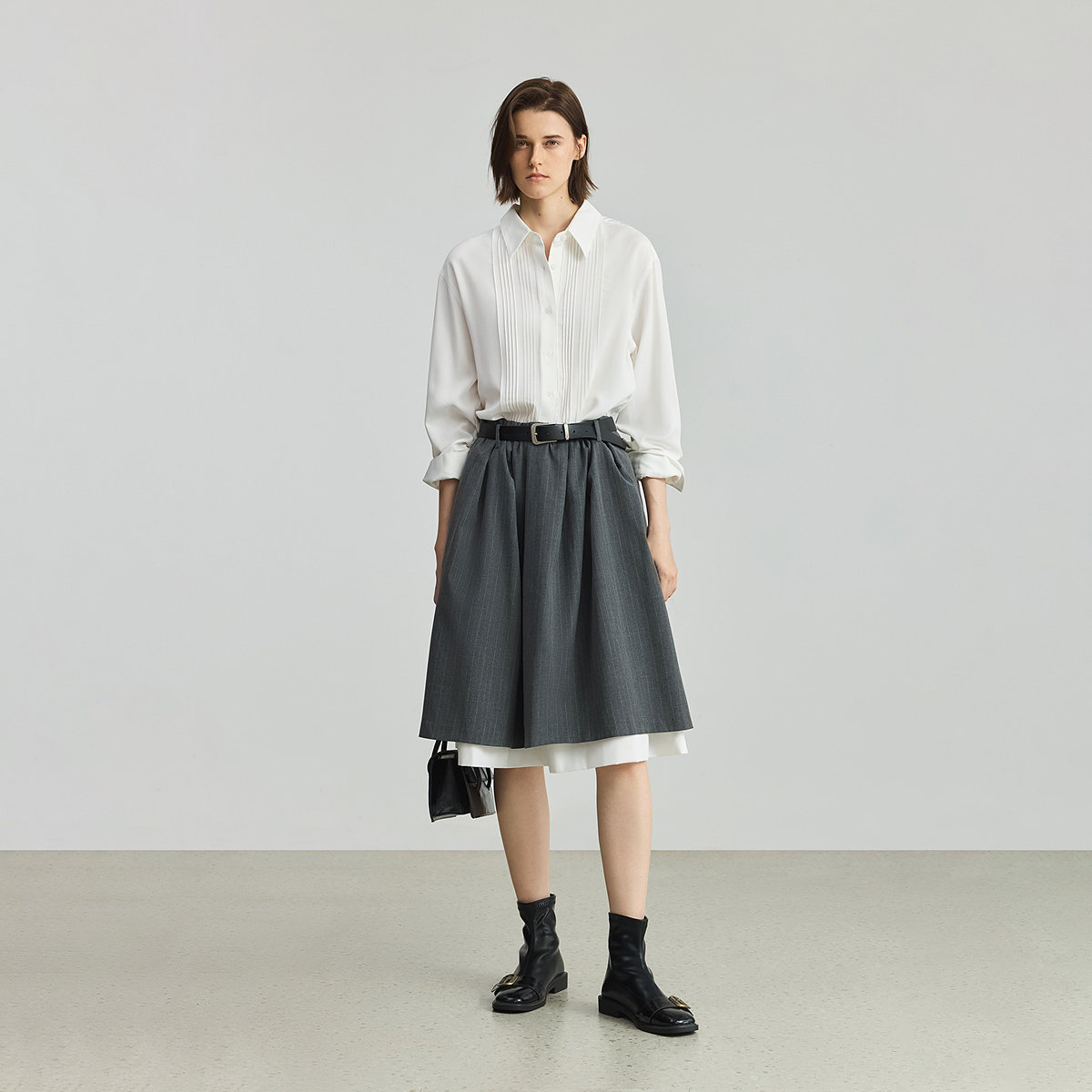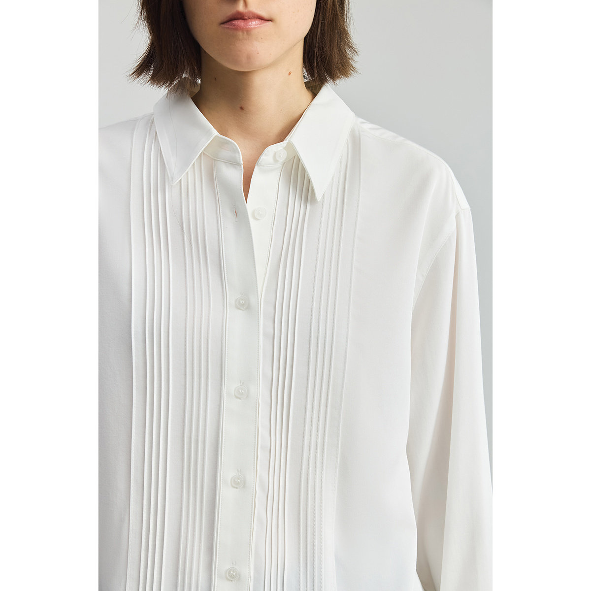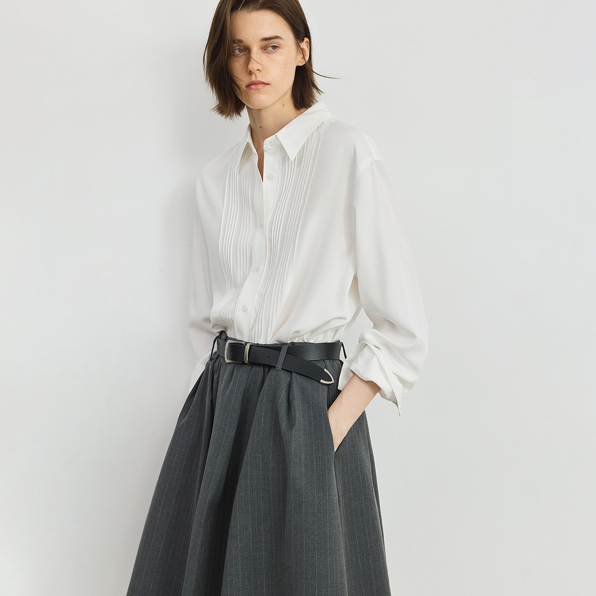 LILY2025新款学院风法式塔克褶透气垂感气质通勤白色衬衫外套女