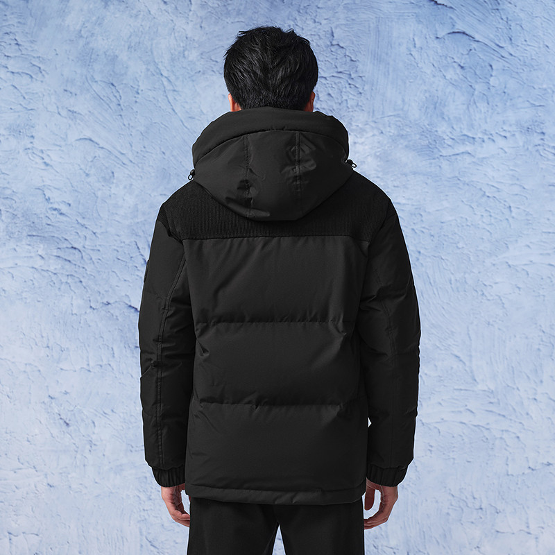 骆驼男装秋冬黑色加厚保暖鸭绒短款面包服男女同款防水羽绒服外套