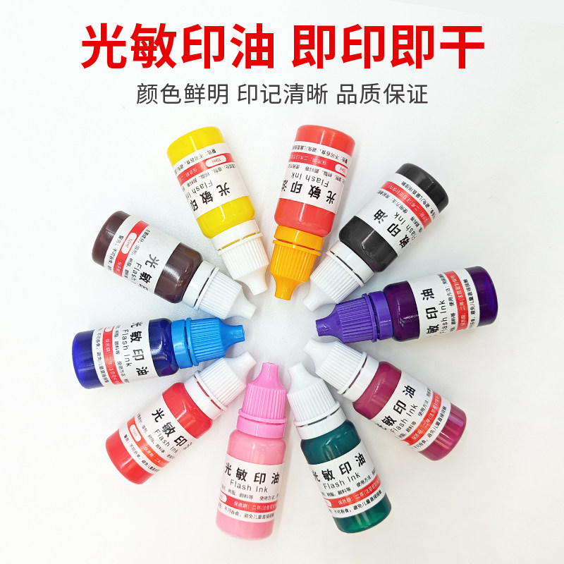 光敏印油公章专用红色补充液油性万次印印章速干财务印台油墨白蓝黑色快干印油紫色非水性回墨原子印章加印油