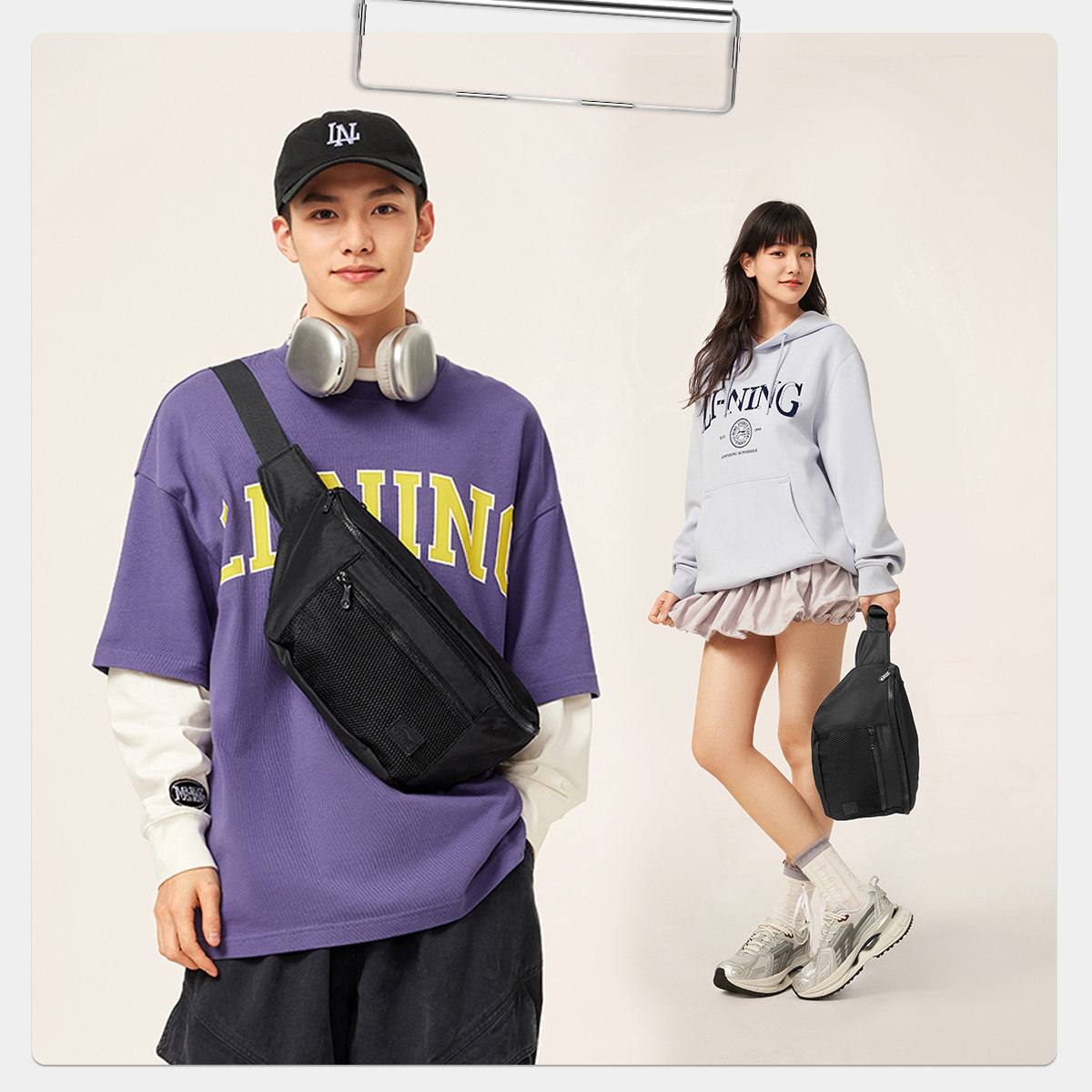 李宁包袋 运动时尚系列 男女同款防泼水便携小巧简约腰包斜挎包