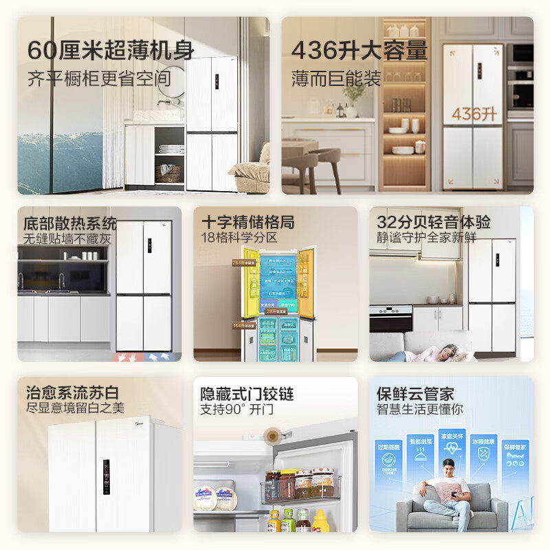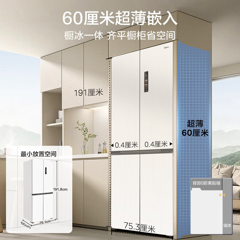 双系统|美的M60小机皇520超薄零嵌入式冰箱家用法式多门四门双开