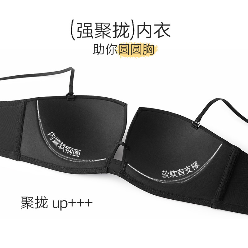 菇娘家稳稳杯无肩带内衣女大胸美背抹胸裹胸隐形无痕聚拢防滑文胸