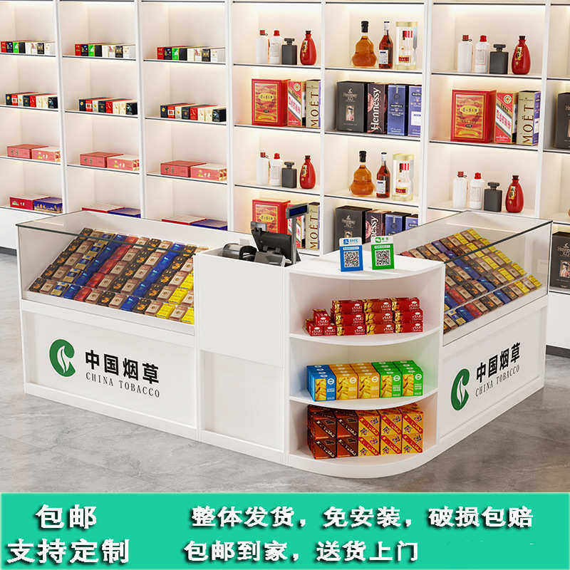 转角柜组合一体商场柜台小卖部柜烟超市柜玻璃柜烟超市收银台展示
