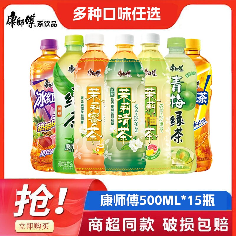 康师傅500ml*15瓶绿茶茉莉花茶冰红茶饮料调味茶柚茶G龙井果汁