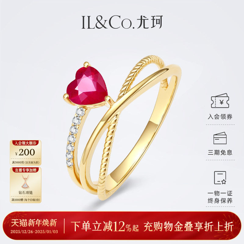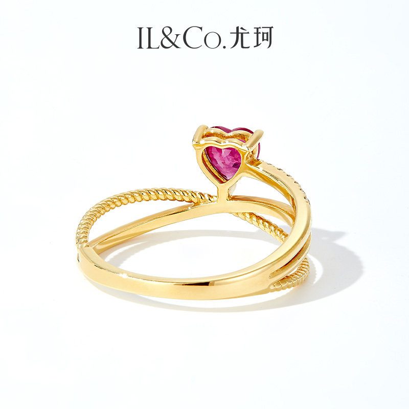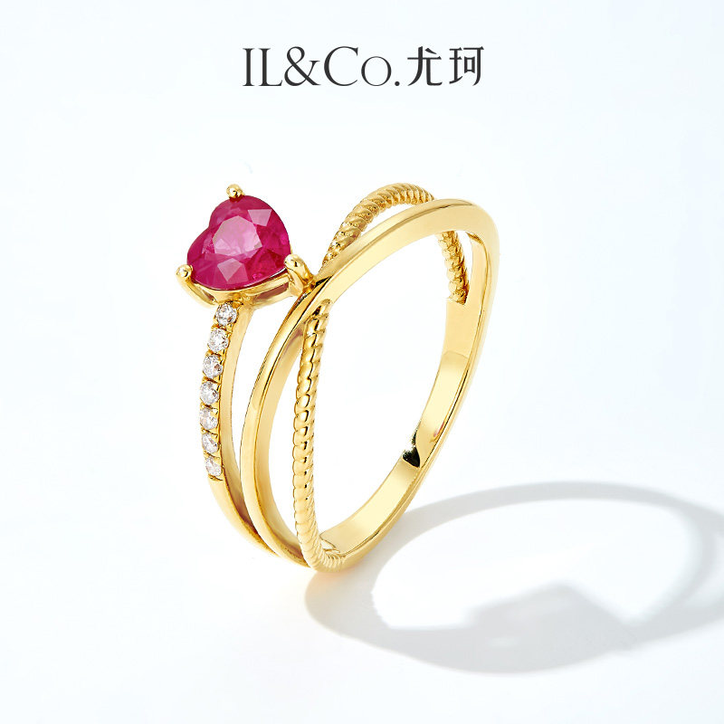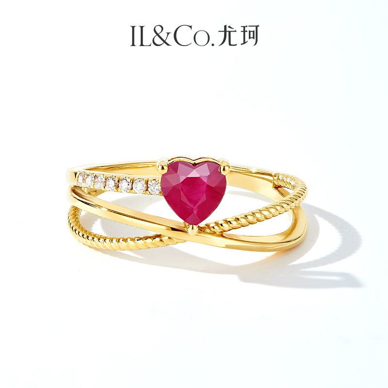 ILCO尤珂「桃乐丝」18K金红宝石钻石戒指心形天然彩宝交叉设计感