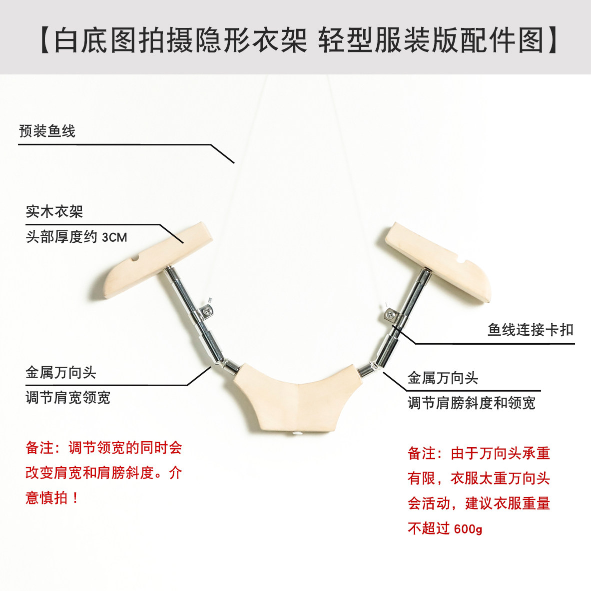 可调节白底图拍摄隐形衣架 镂空衣领实木衣架 服装展示摄影道具