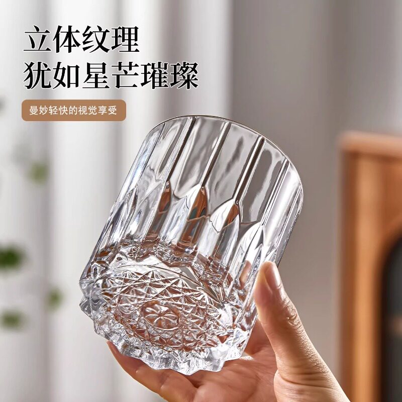 新款轻奢小酒杯浮雕加厚玻璃白酒杯酒盅小号家用一口杯烈酒宝石纹