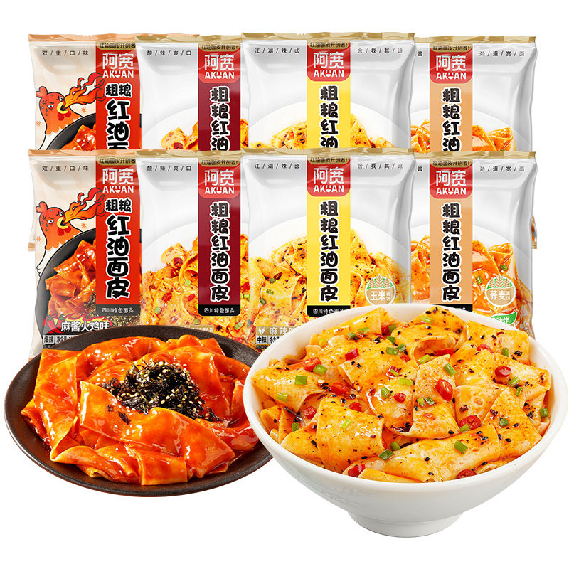 阿宽粗粮红油面皮袋装方便面免煮泡面荞麦玉米全麦干拌面皮非油炸