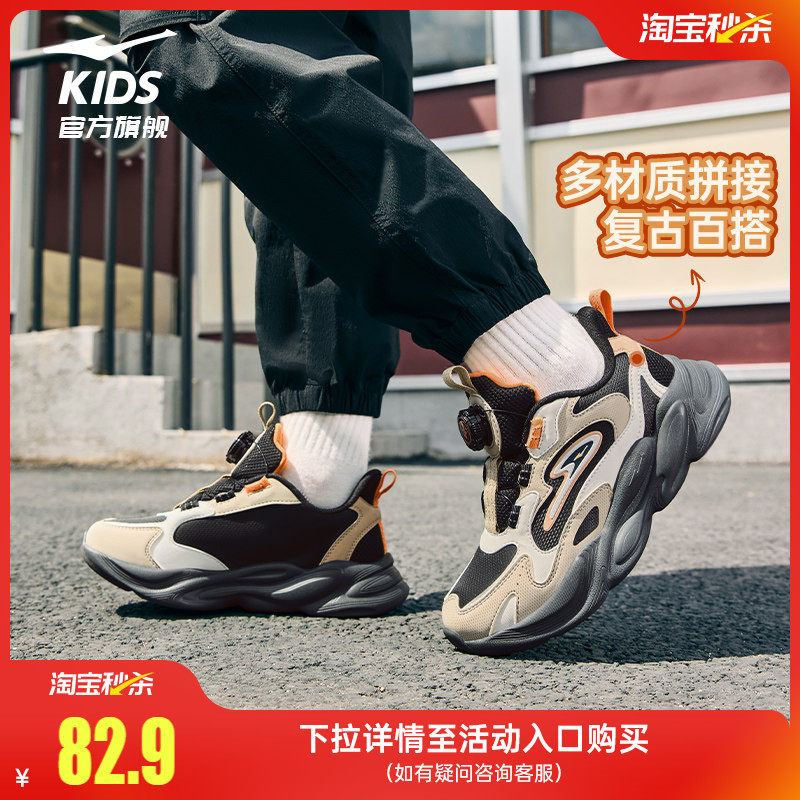 川流2|鸿星尔克童鞋男童红色秋冬运动鞋儿童旋钮新年鞋大童休闲鞋