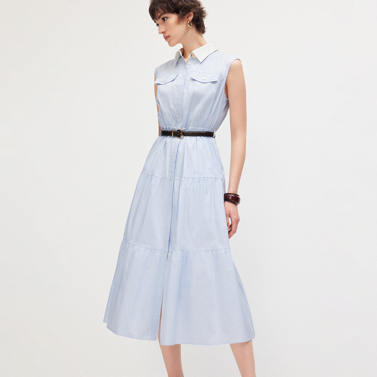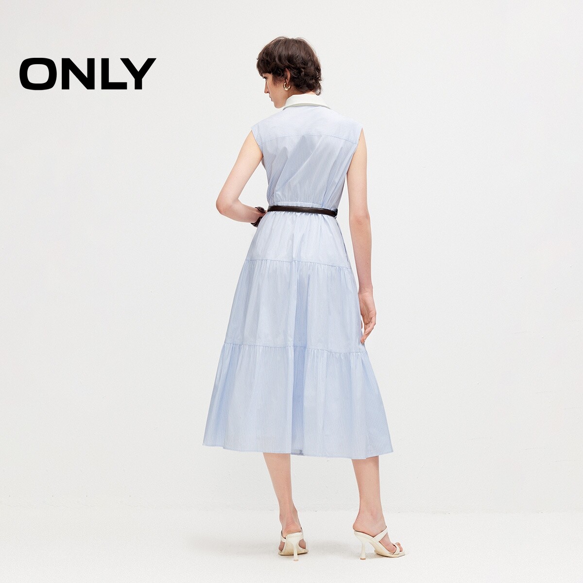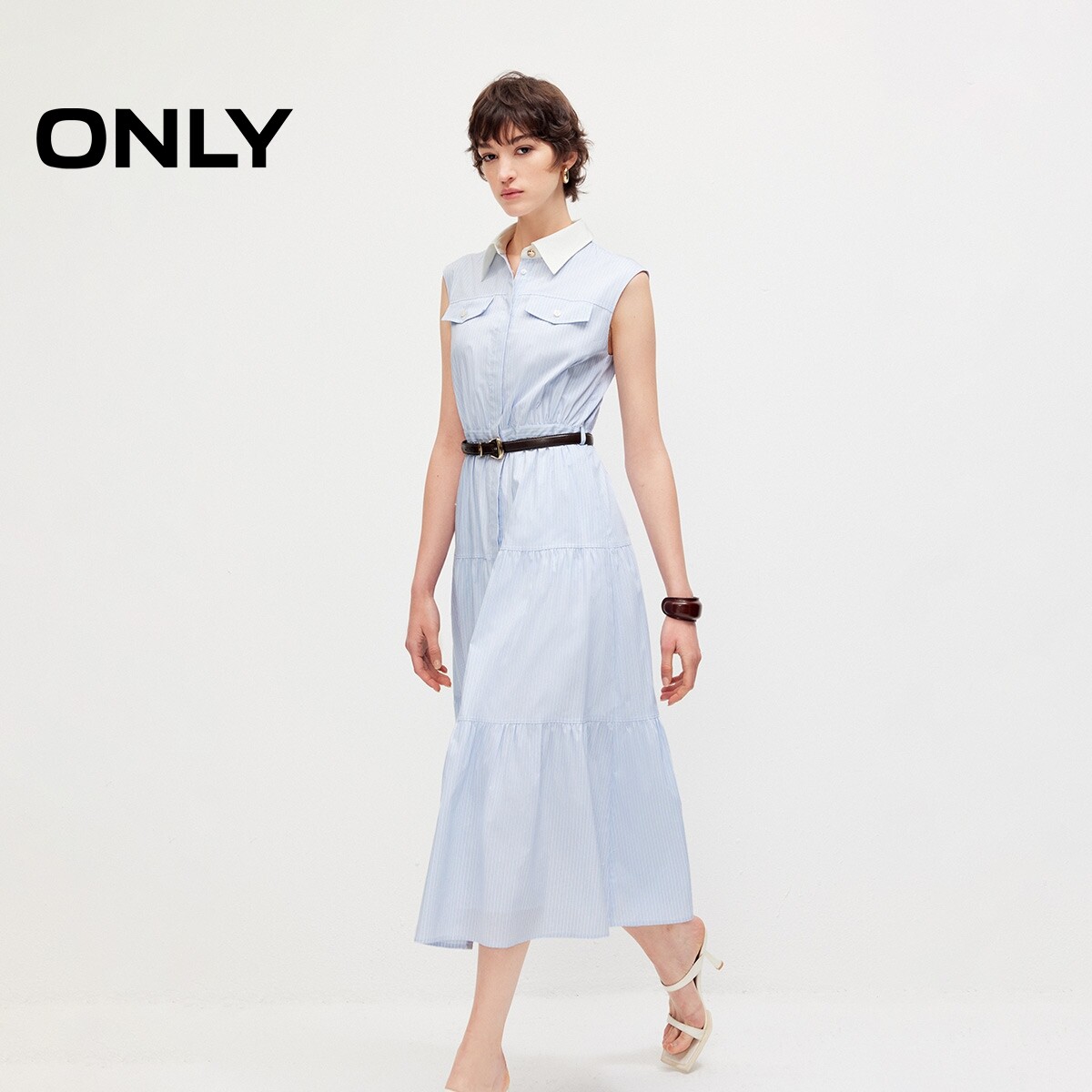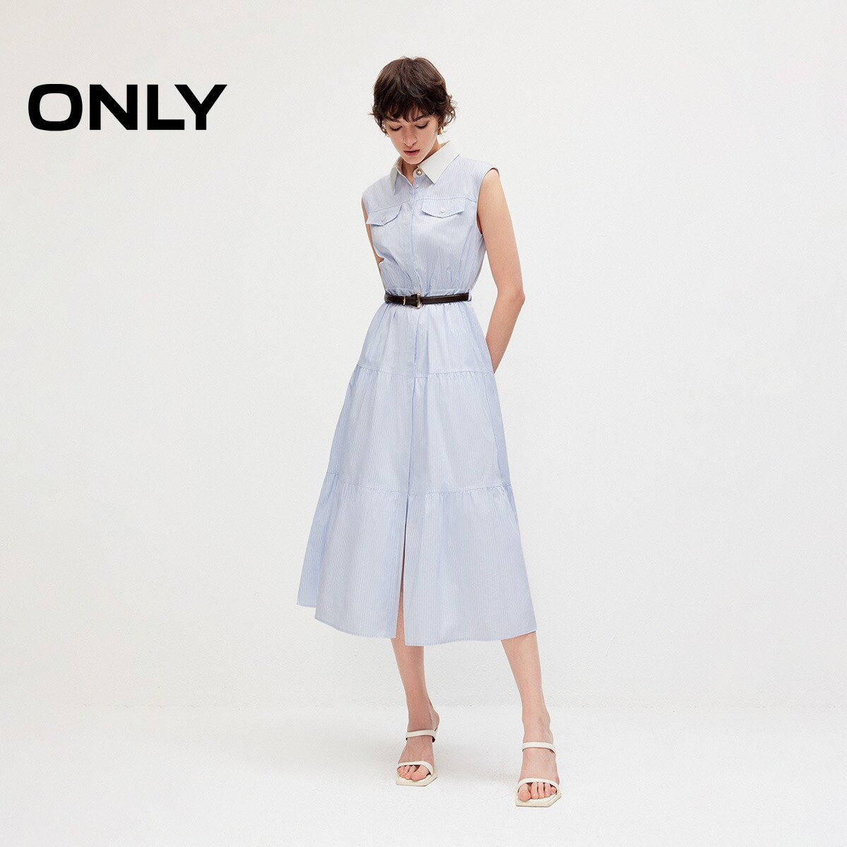 ONLY2026春季新款裙子撞色翻领无袖中长款无袖衬衫中长款连衣裙女