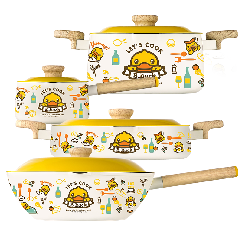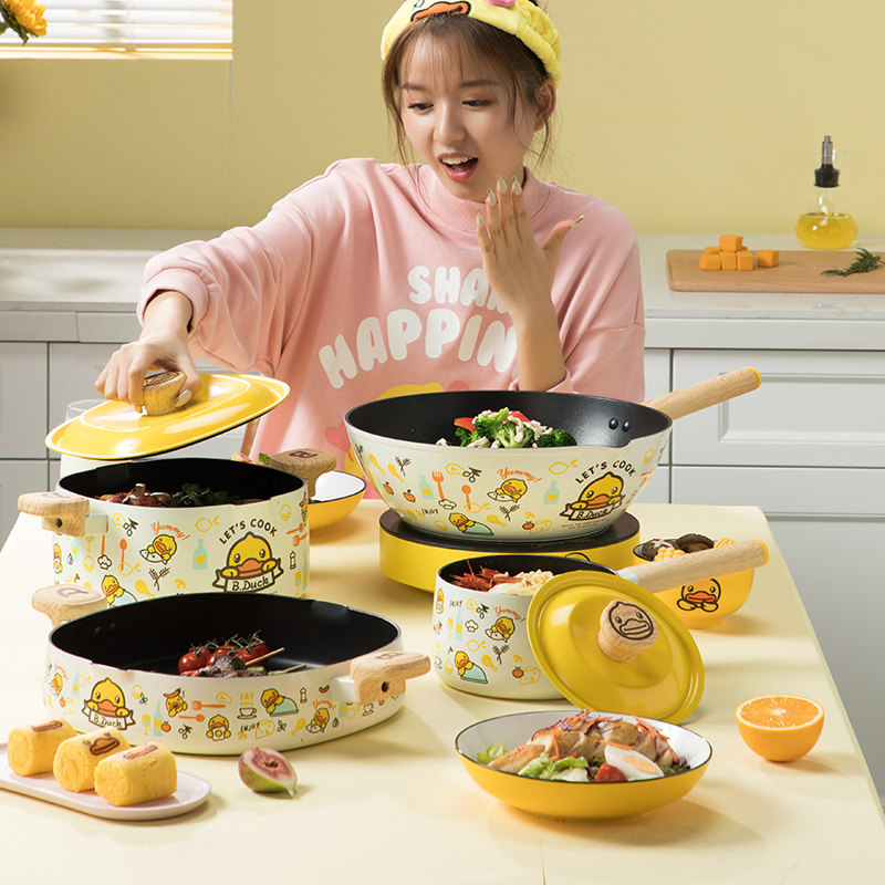 炊大皇小黄鸭锅具套装全套家用三件四件套不粘锅厨房厨具炒锅组合