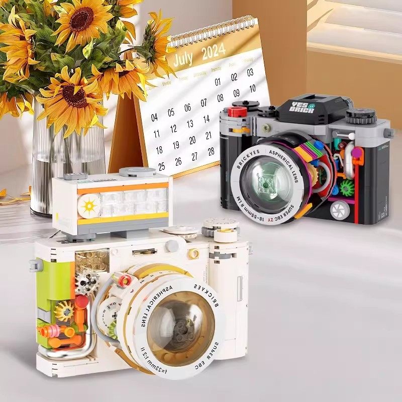 积木拼装花高颜值3d立体拼图手工diy生日礼物永生花复古相机摆件