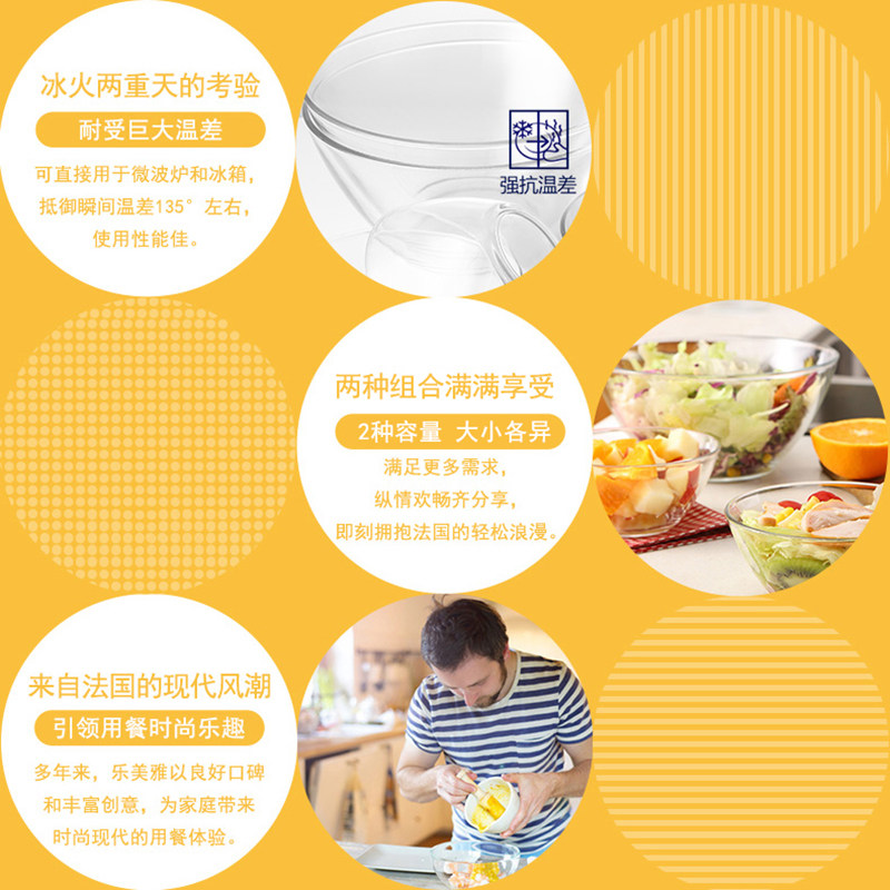 乐美雅钢化玻璃碗耐高温汤碗微波炉面碗家用打蛋和面盆水果沙拉碗