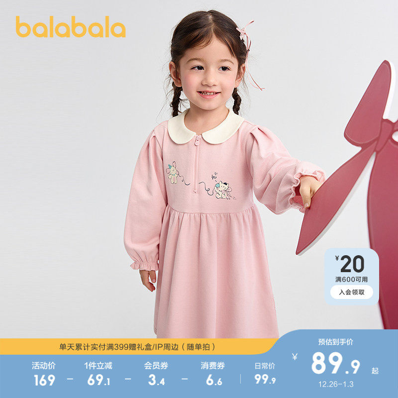 巴拉巴拉童装女童连衣裙学院风A字裙2025秋新款宝宝翻领裙子甜美