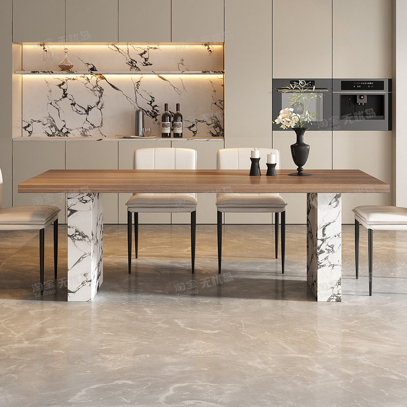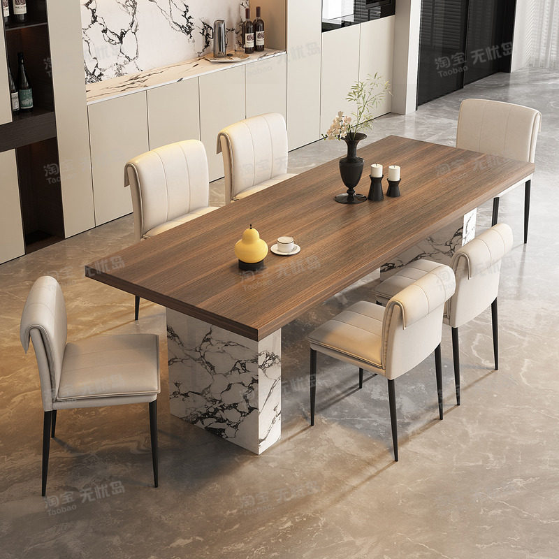 设计师岩板餐桌椅组合高级感轻奢现代简约饭桌子下挂长方形餐桌