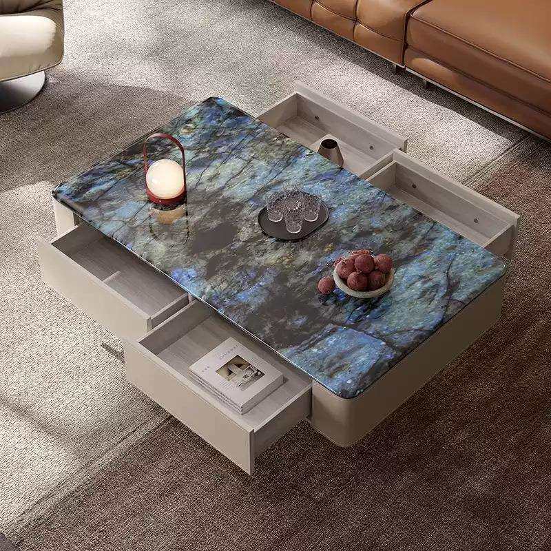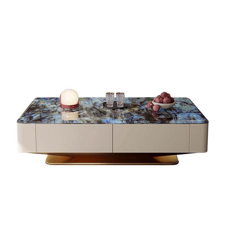 意式天然大理石茶几马鞍皮家用微晶石奢石轻奢方形新款客厅茶几