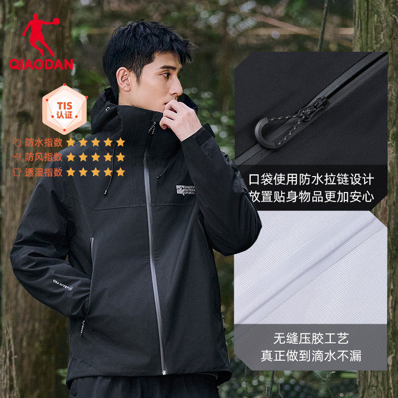 乔丹山神户外运动服男女款连帽防水外套防风保暖徒步登山风衣夹克