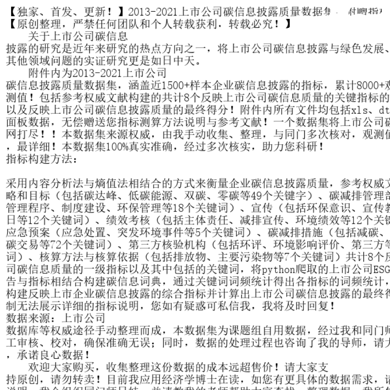 【独家、首发、更新!】2013-2021上市公司碳信息披露质量数据集