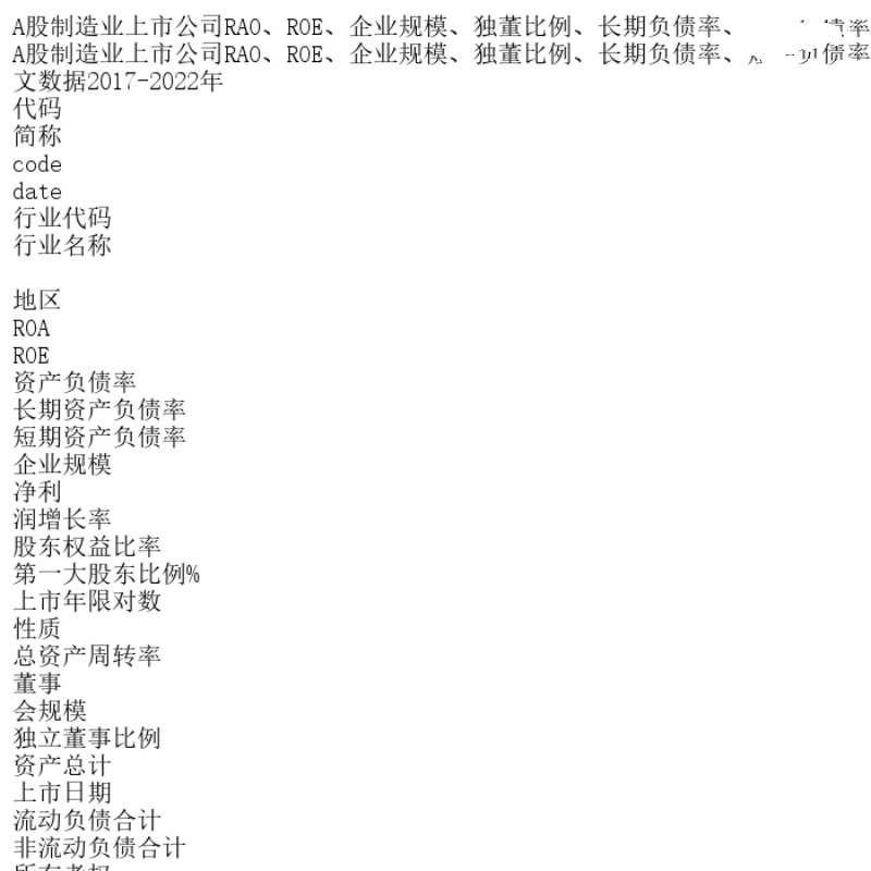 A股制造业上市公司RAO、ROE、企业规模、独董比例、长期负债率、