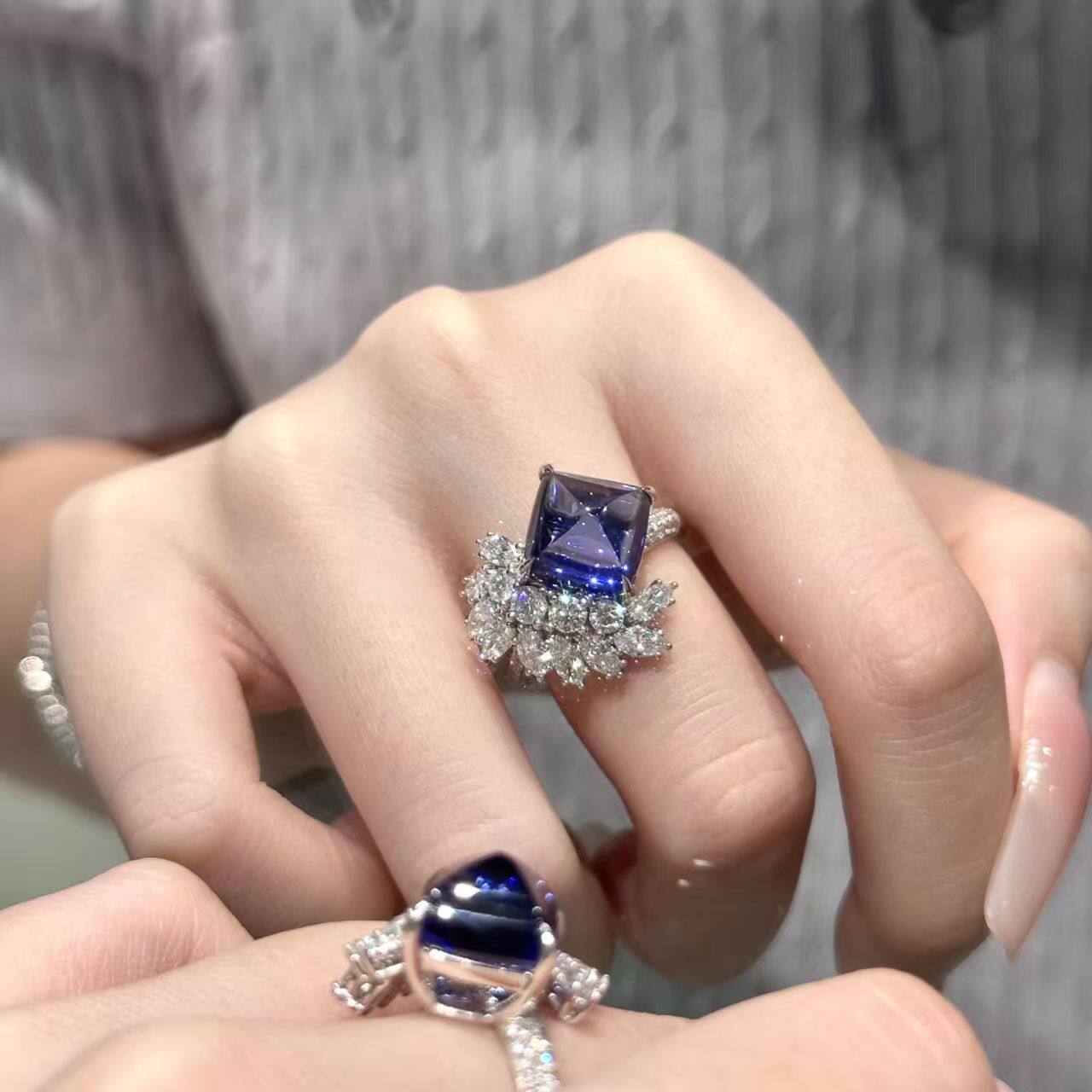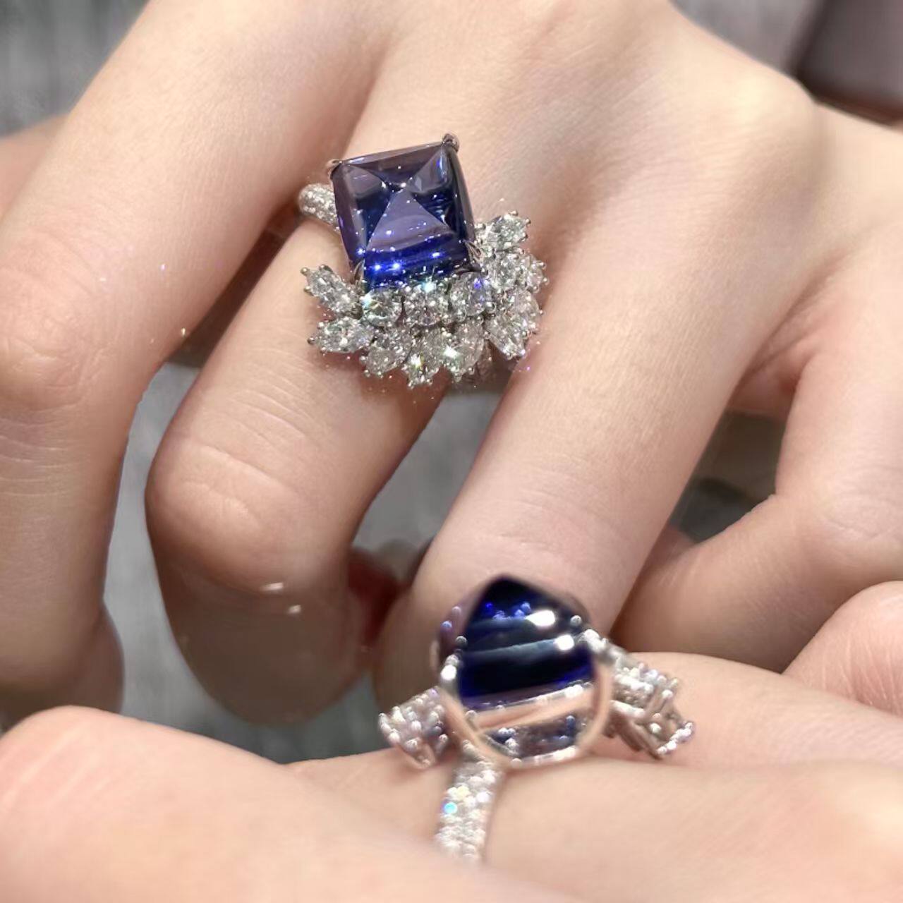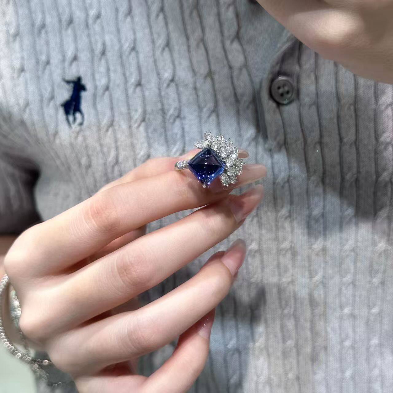 巨显白!复古宫廷风方形蓝钻禾穗开口戒指ins轻奢小众高级感指环
