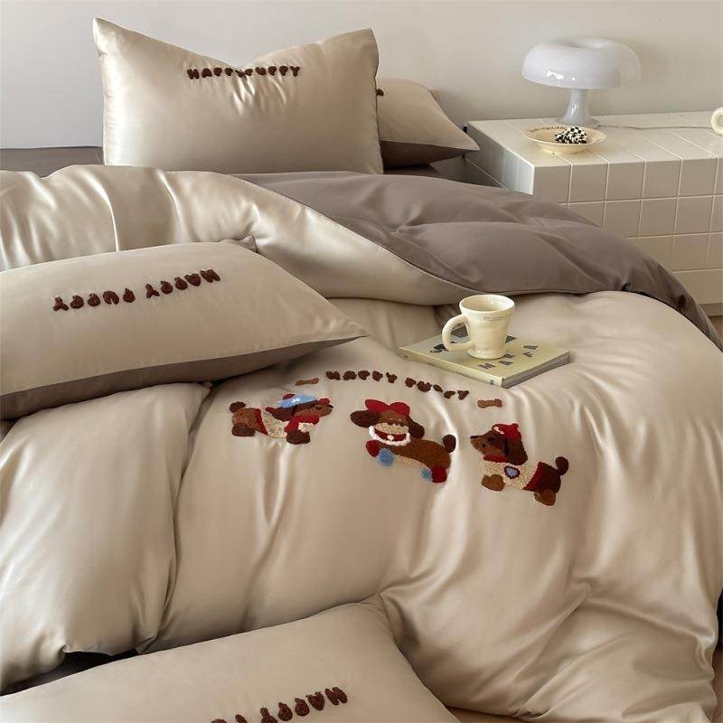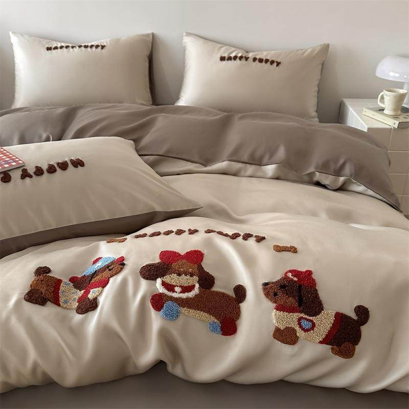 母婴级新款A类天丝双拼毛巾绣四件套动物王国床上用品被套床单4