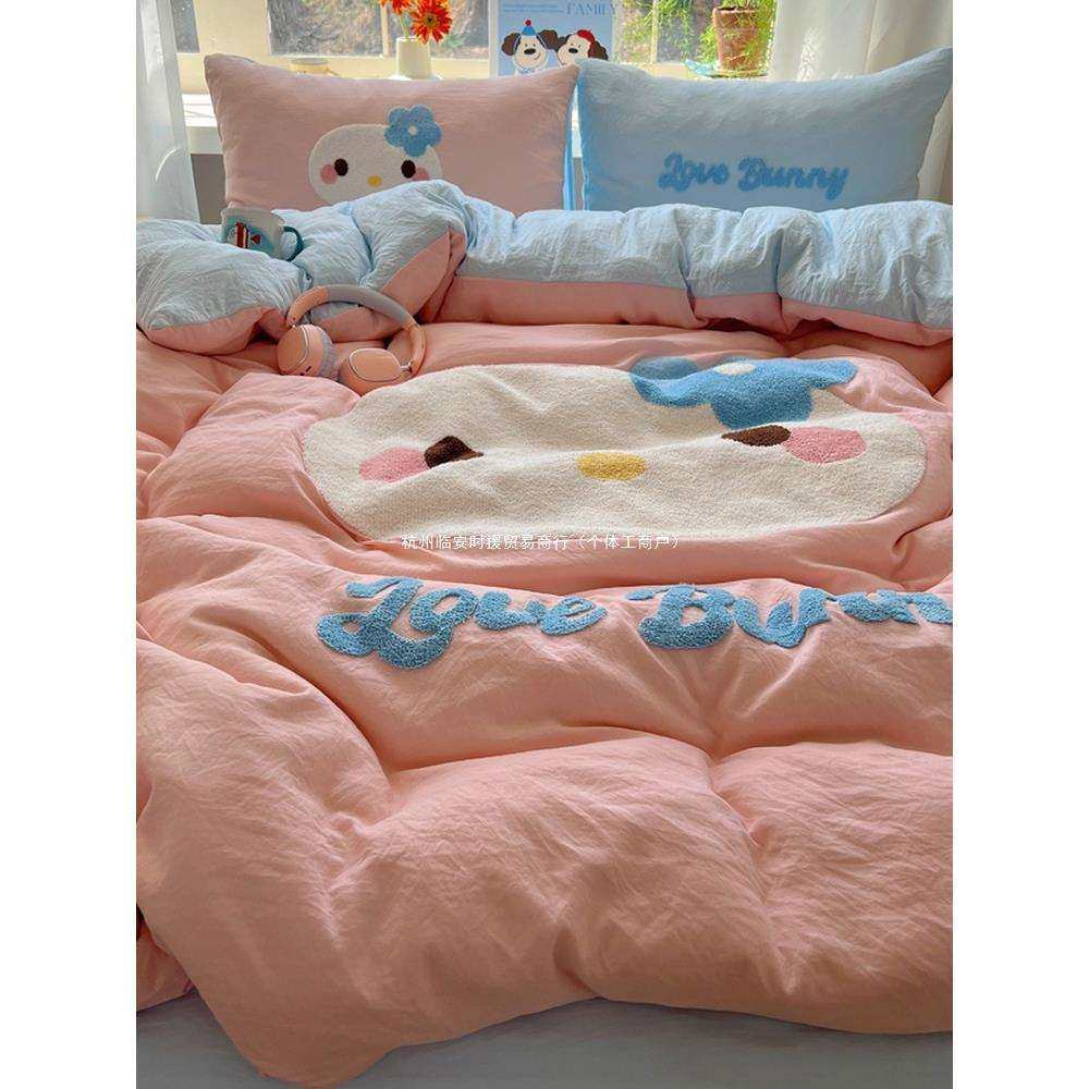 少女心a类床上用品纯棉四件套毛巾绣双人被套床笠床单三件套