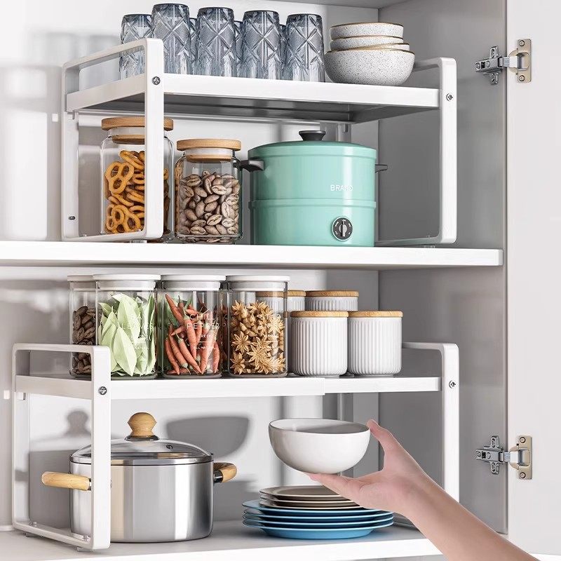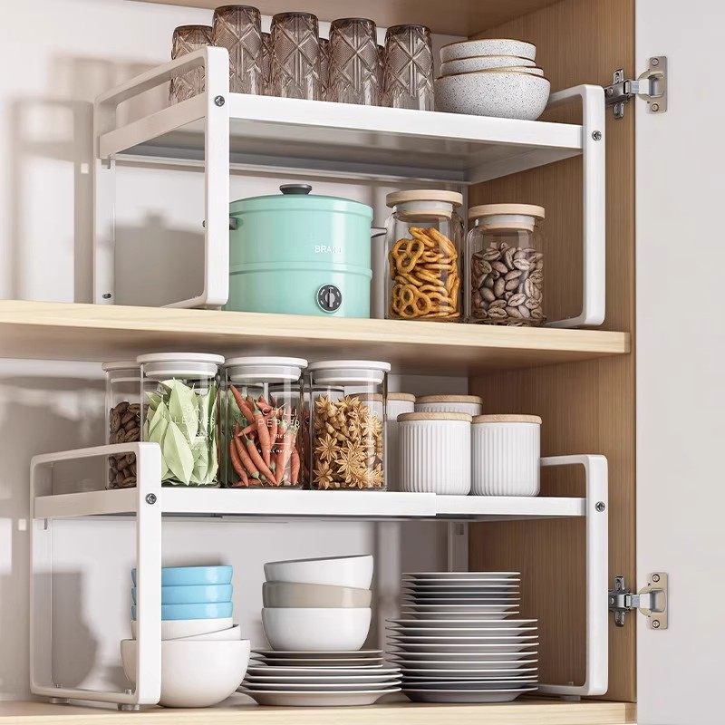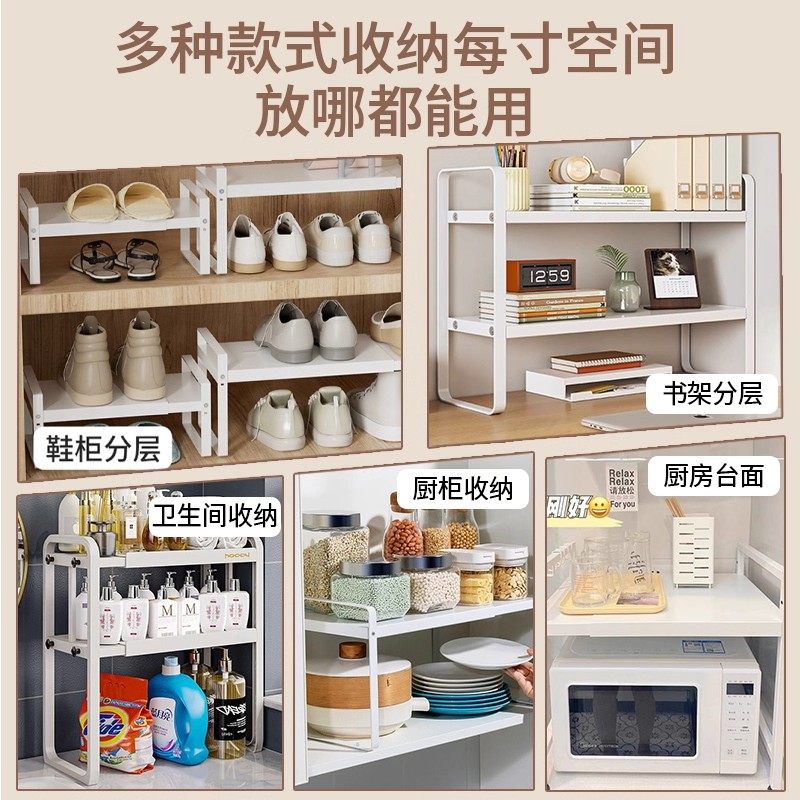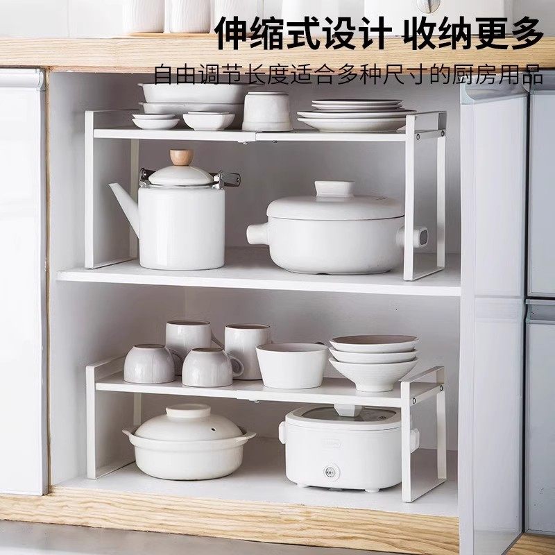 可伸缩厨房置物架隔板分层调料收纳架子锅架柜内橱柜台面锅具碗碟