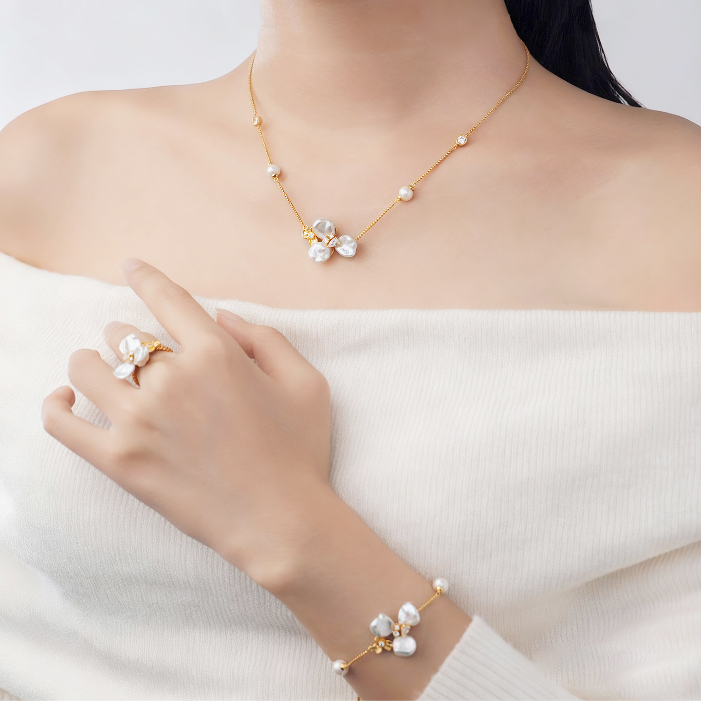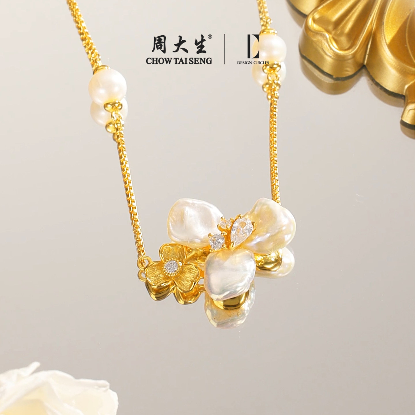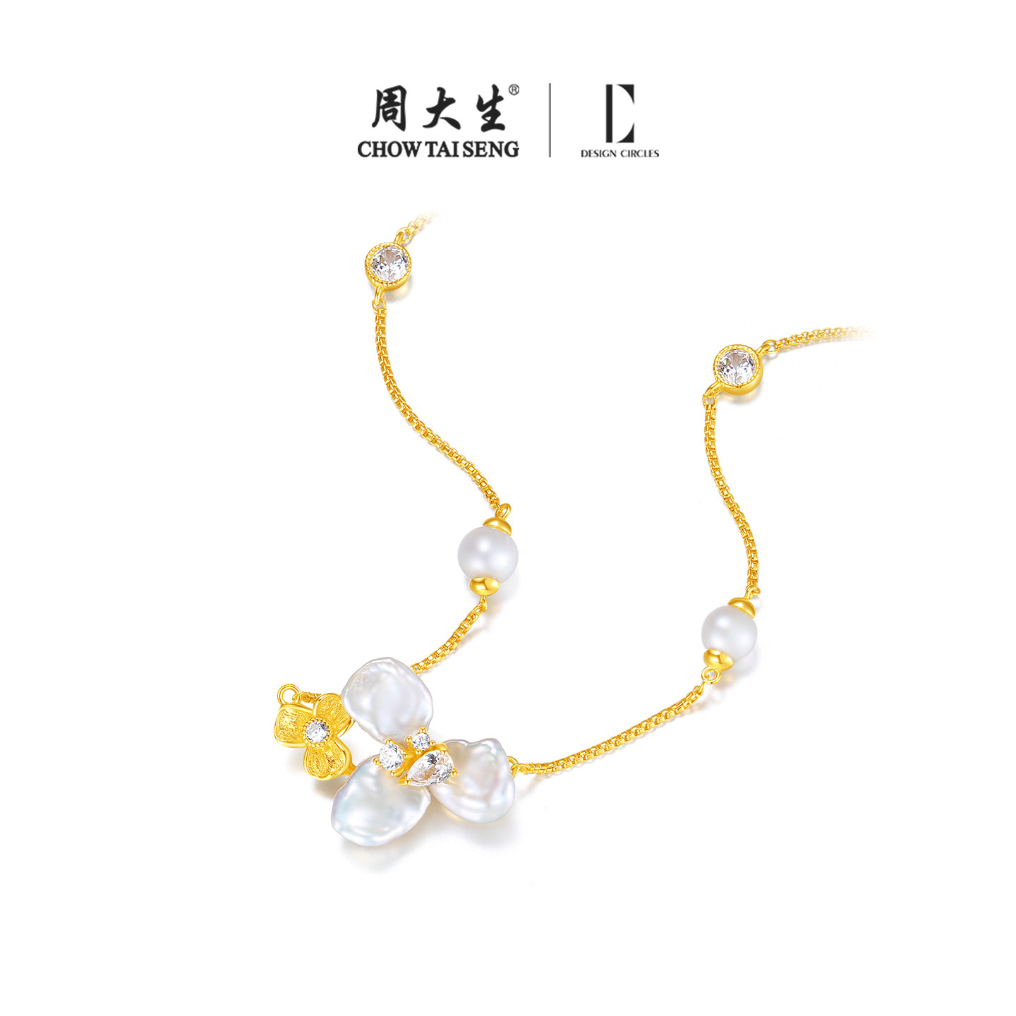 周大生*DC鸢尾花项链女纯银巴洛克珍珠锁骨链首饰生日礼物送女友