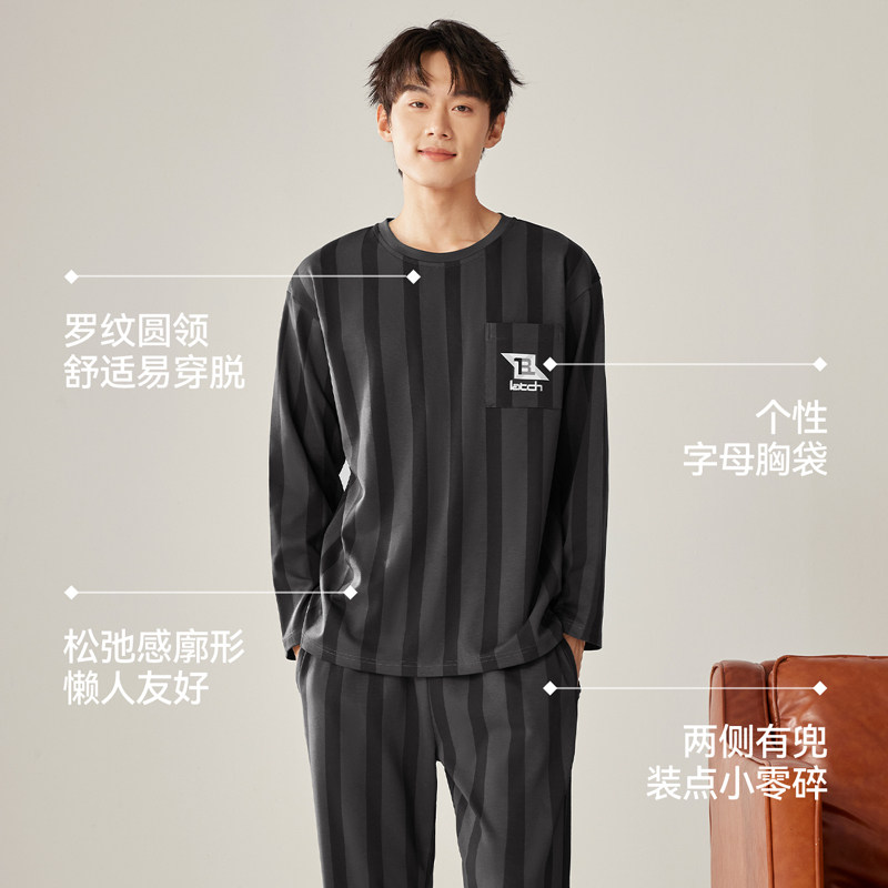 森马男士家居服套装纯棉秋冬季2026新款外穿遛弯条纹休闲男生睡衣