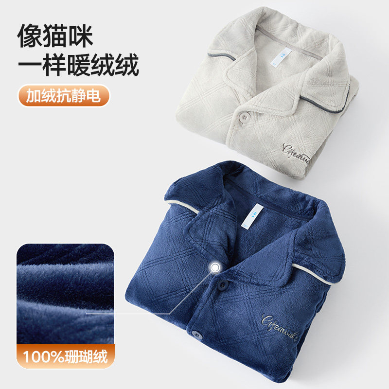 冬季珊瑚绒男士睡衣三层夹棉加厚加绒法兰绒秋冬款家居服保暖套装