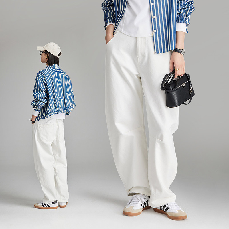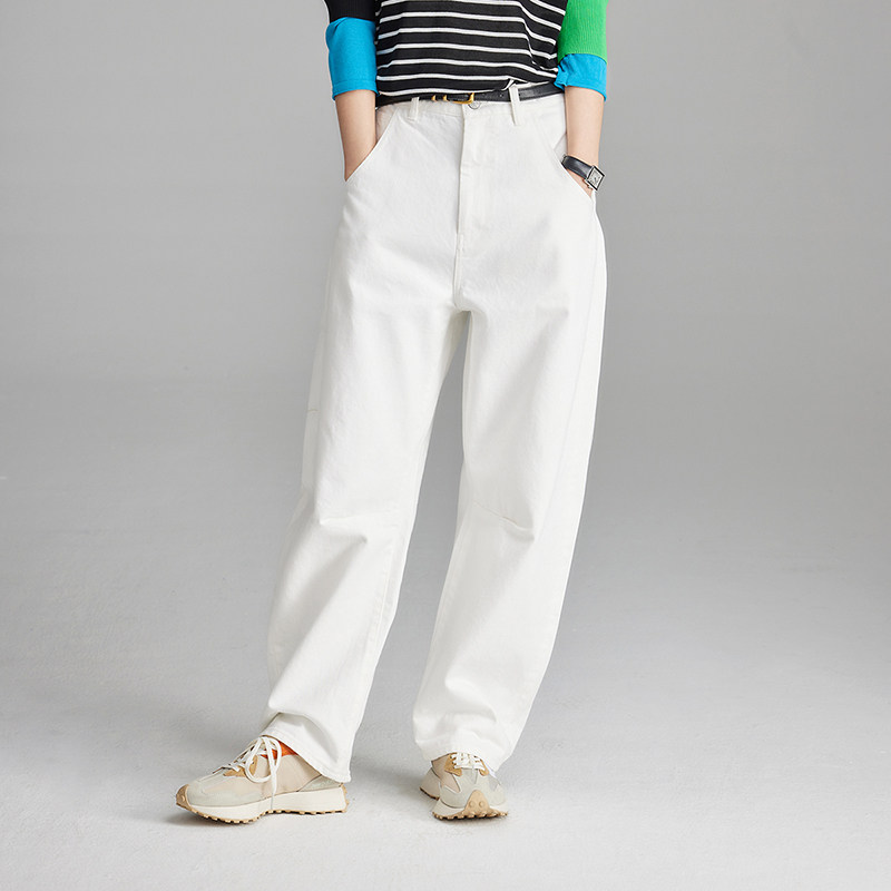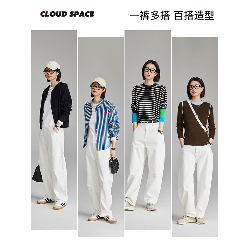 云上生活【香蕉裤】百搭梨型阔腿弧形白色牛仔裤春季直筒裤下装女