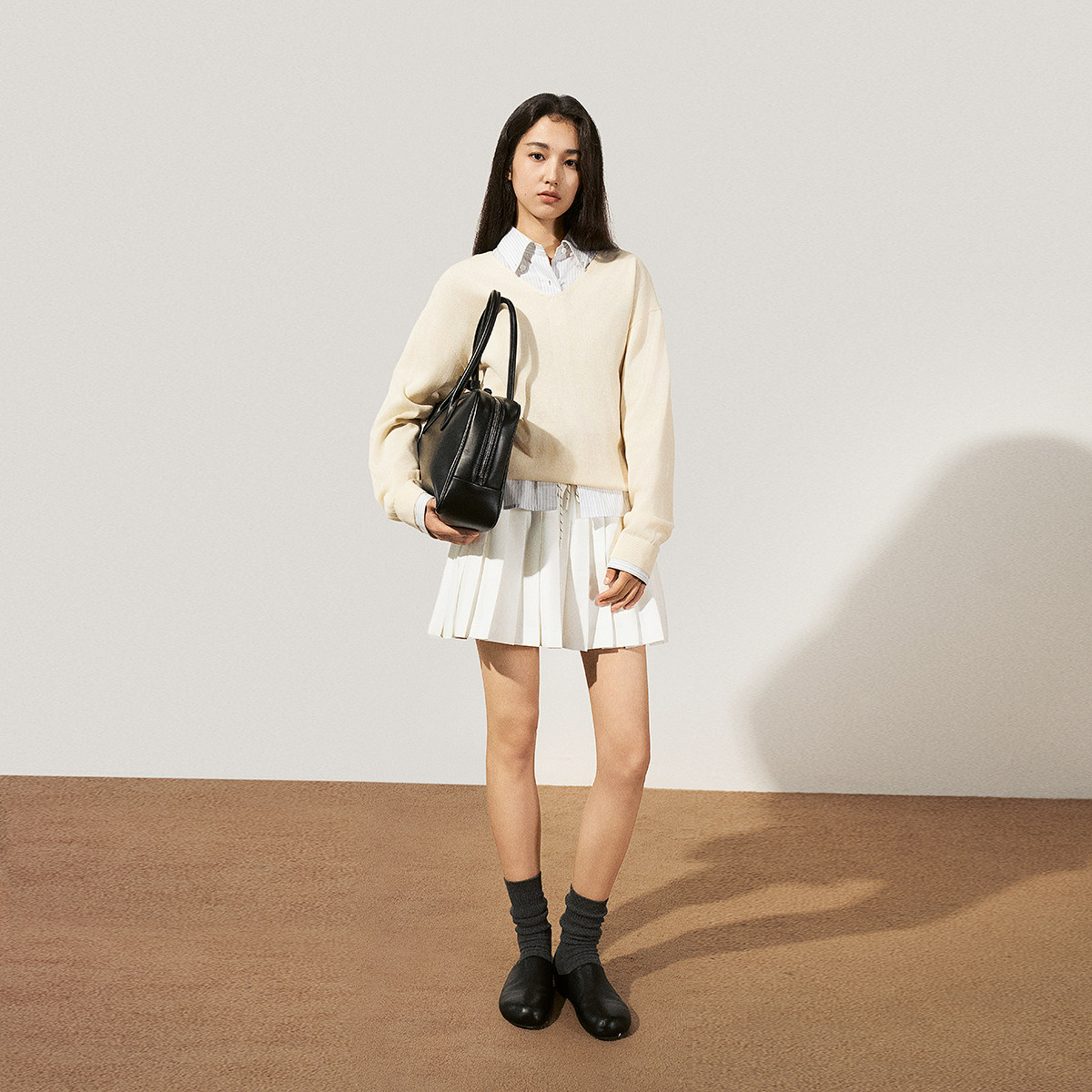【特享折扣】欧时力百褶A字半身裙短裙抽绳淡人穿搭25秋季尖货