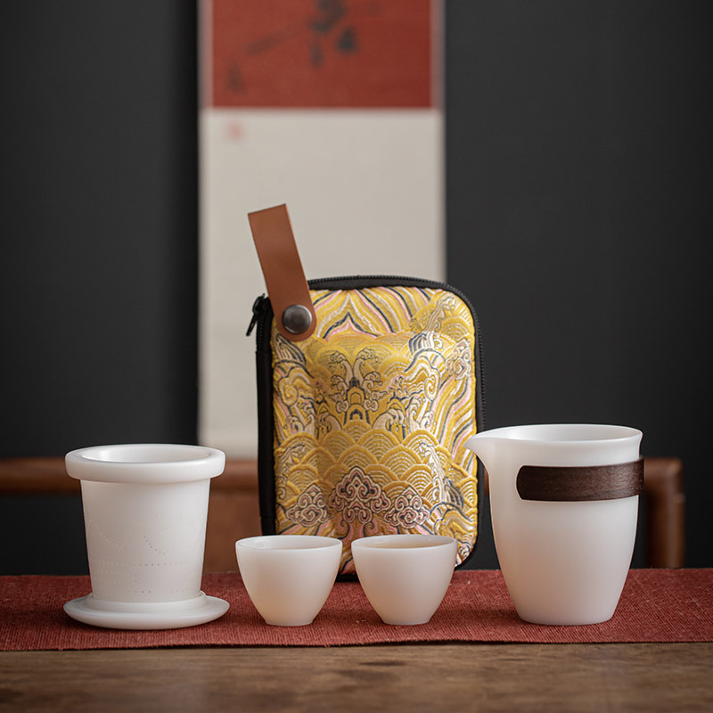 唐舍 冰种羊脂玉瓷快客杯一壶二杯旅行茶具套装旅游便携包白瓷