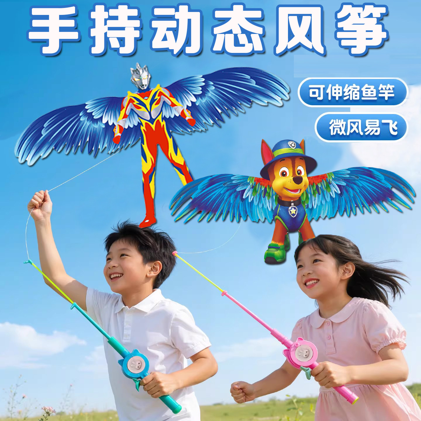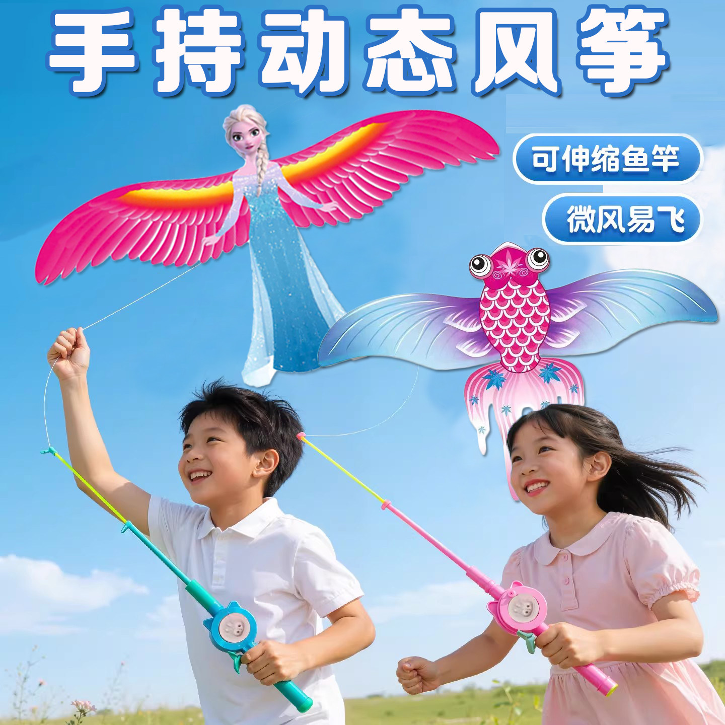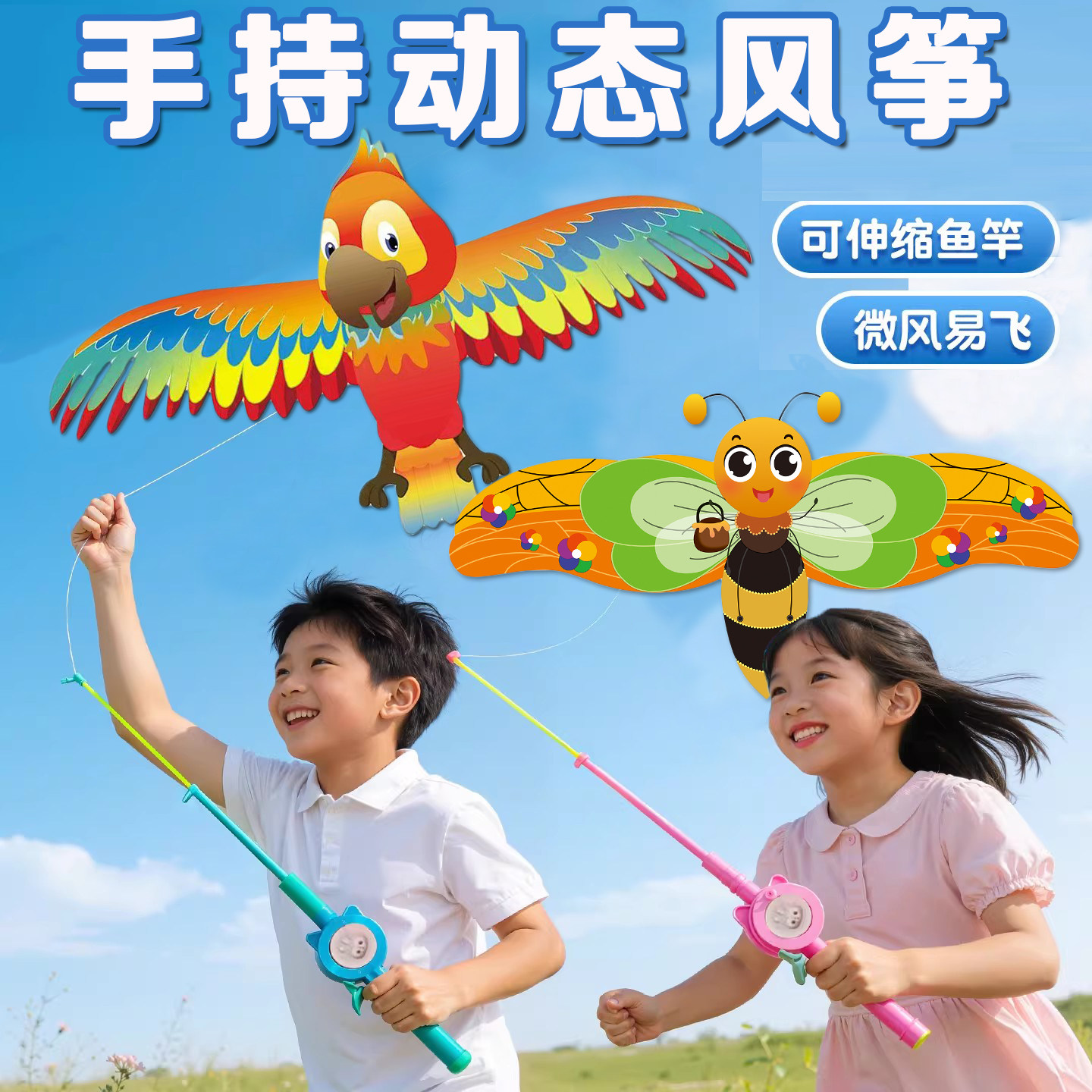 鱼竿儿童风筝手持动态迷你燕子塑料真蝴蝶小蜜蜂3到6岁微风易飞
