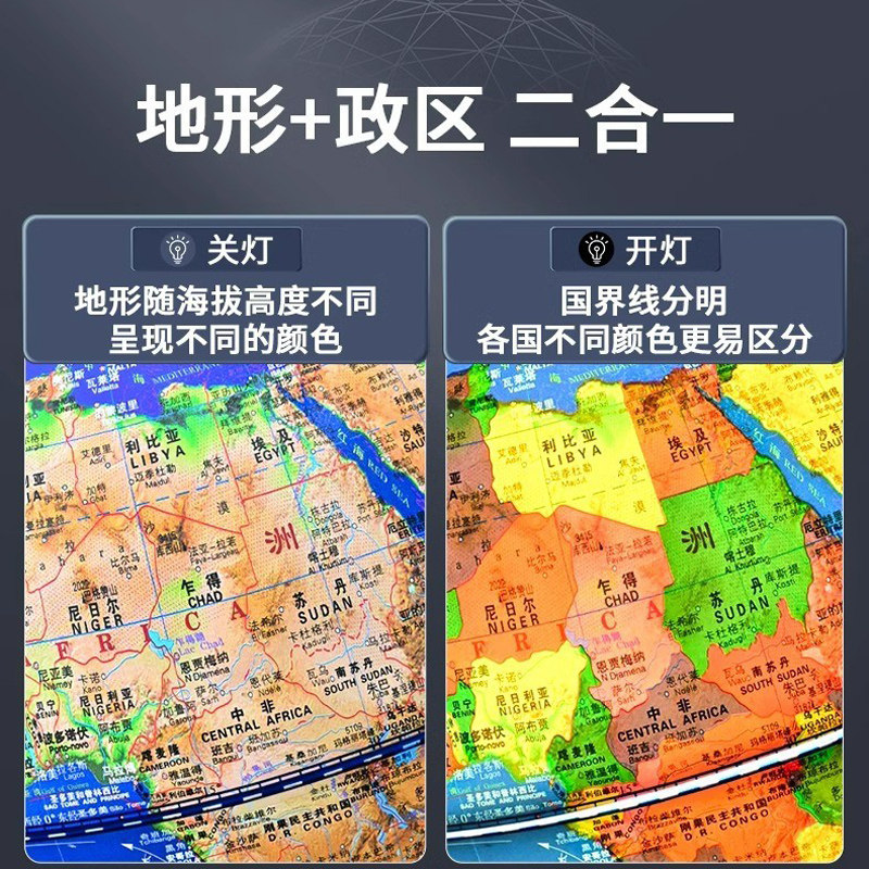 志诚 高差浮雕地球仪正版悬浮3D立体地球仪发光台灯凹凸地理模型中大号小号教学版初高中学生用地球仪带灯
