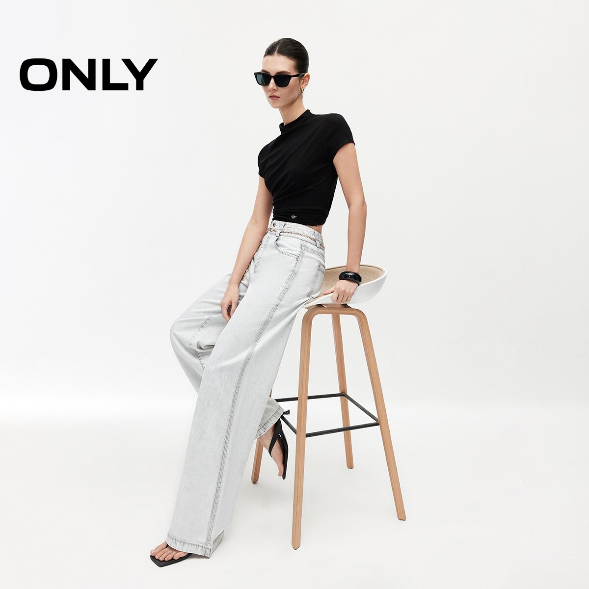 ONLY2026春季新款莱赛尔松弛感水洗腰链装饰宽松直筒牛仔裤女