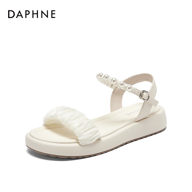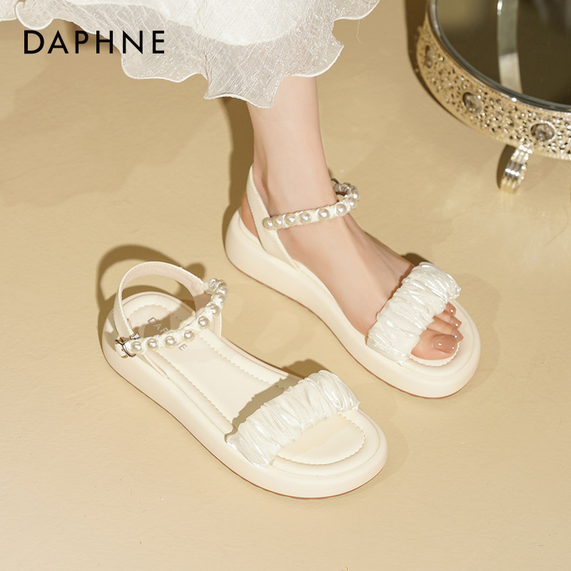 达芙妮凉鞋女款2026新款夏天绝美珍珠女士凉鞋平底外穿凉鞋女夏季
