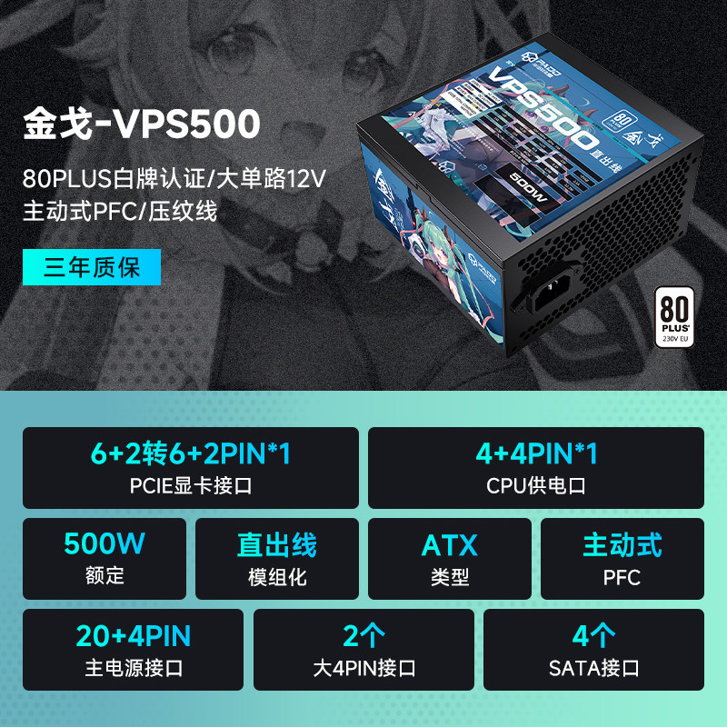 半岛铁盒VPS500电脑电源500W台式机白牌主机机箱额定650W750W电源