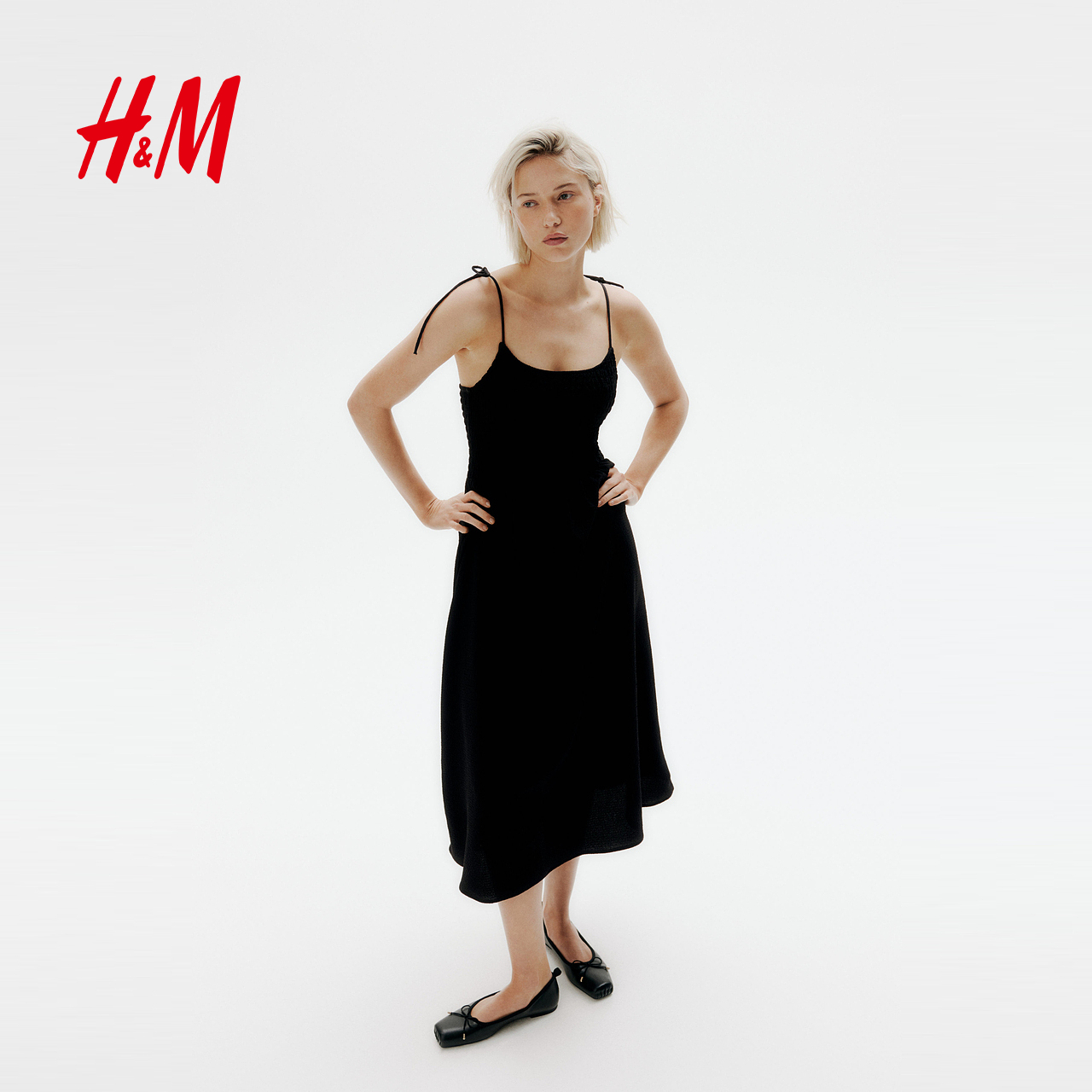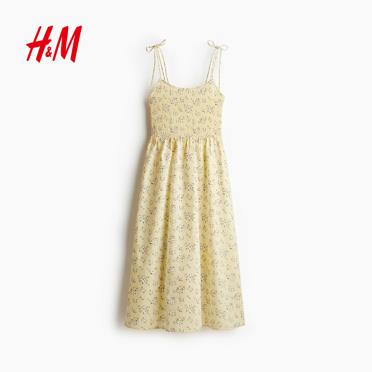 HM女装连衣裙春季法式露背植物印花细吊带小碎花连衣裙1275780