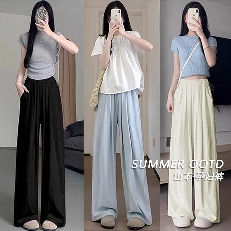孕妇山本阔腿裤夏季薄款外穿奶芙裤宽松宽松大码托腹打底裤子夏装