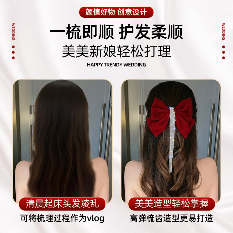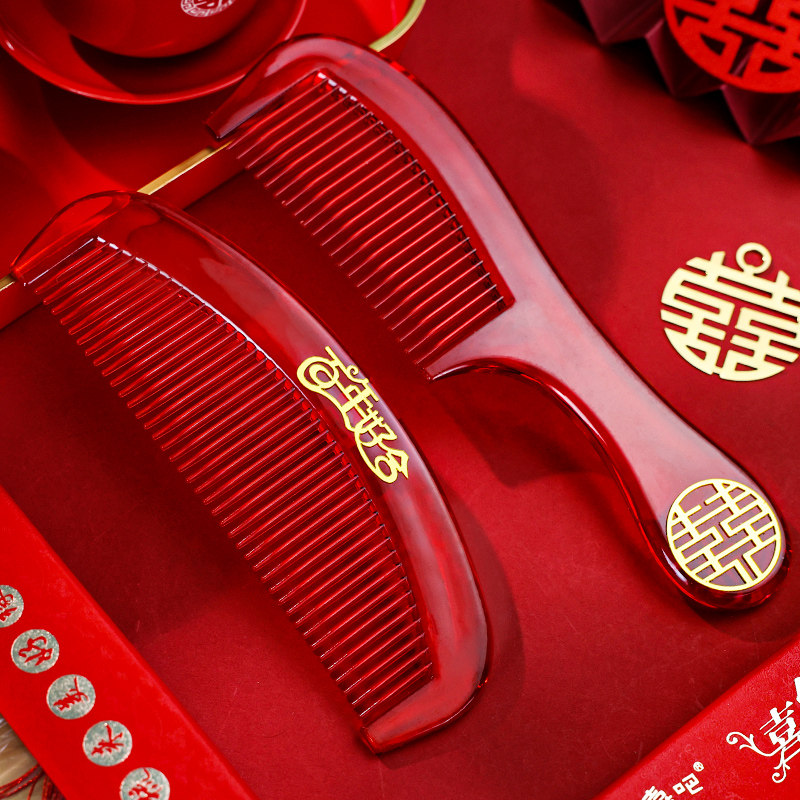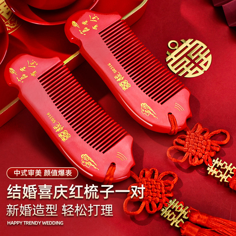 结婚礼物高档喜梳女方陪嫁专用红色喜字梳子一对装婚庆用品大全