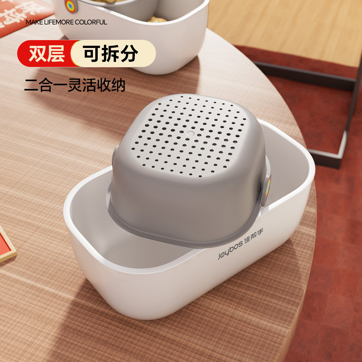 佳帮手收纳盒懒人嗑瓜子神器客厅家用水果盘沥水篮双层零食盒桌面