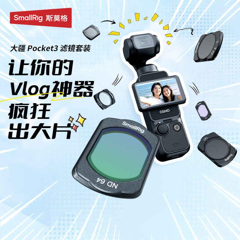 斯莫格适用大疆pocket3滤镜磁吸ND减光黑柔CPL偏振镜抗光保护镜DJI口袋云台运动相机uv镜钢化膜收纳包增广镜