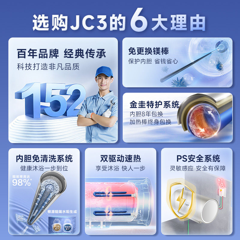 国补AO史密斯佳尼特家用电热水器60升JC速热金圭遥控80升1级能效