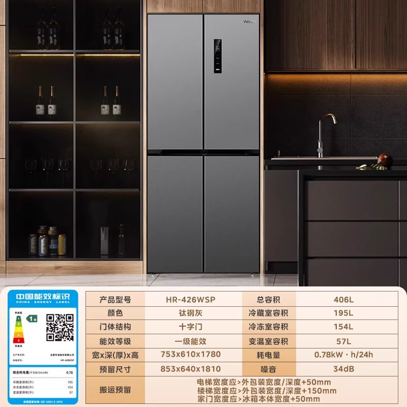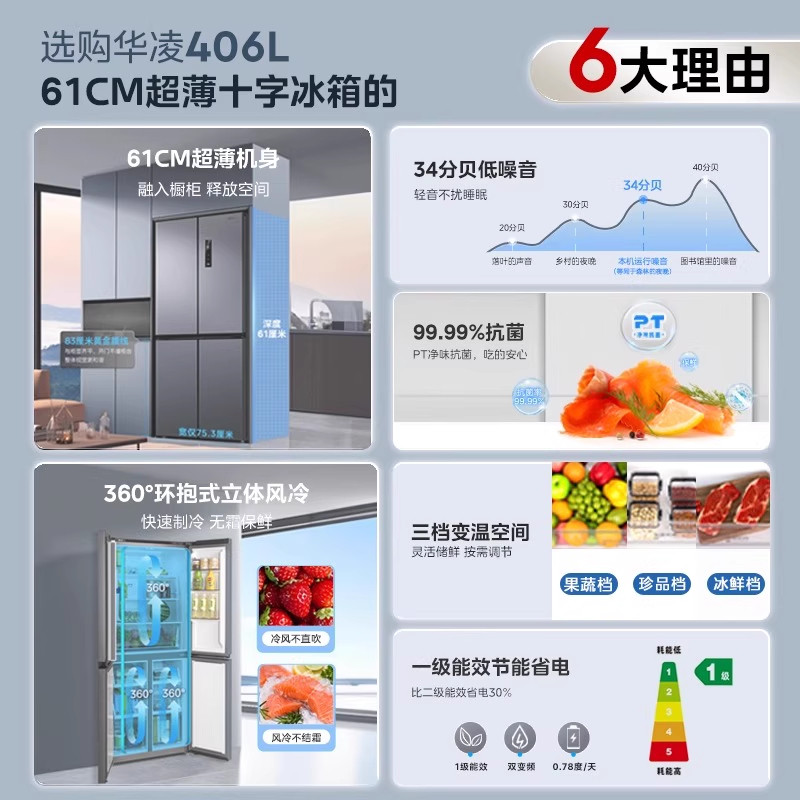 美的华凌神机547双系统超薄零嵌入式十字双开四门家用一级冰箱
