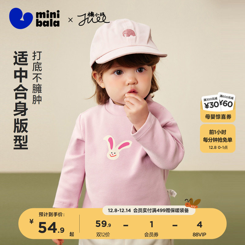 迷你巴拉巴拉婴儿宝宝男女童长袖T恤2025冬新款联名半高领打底衫