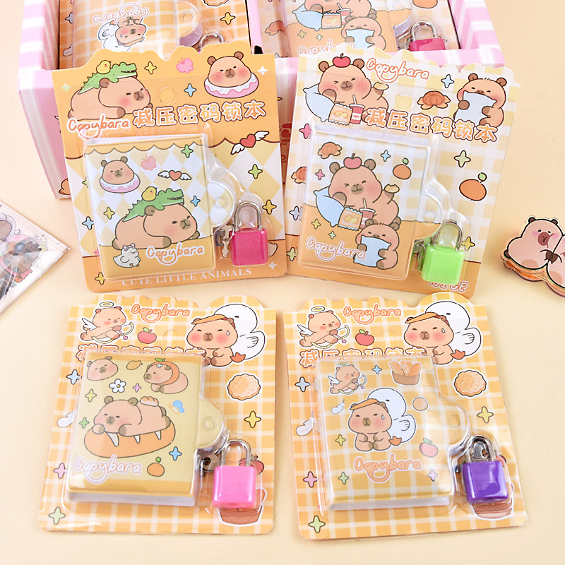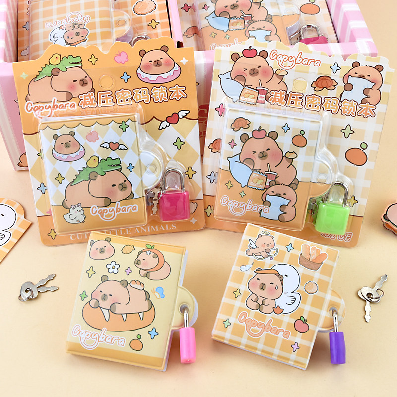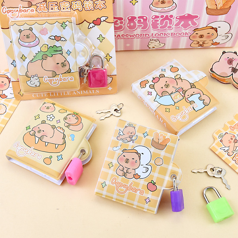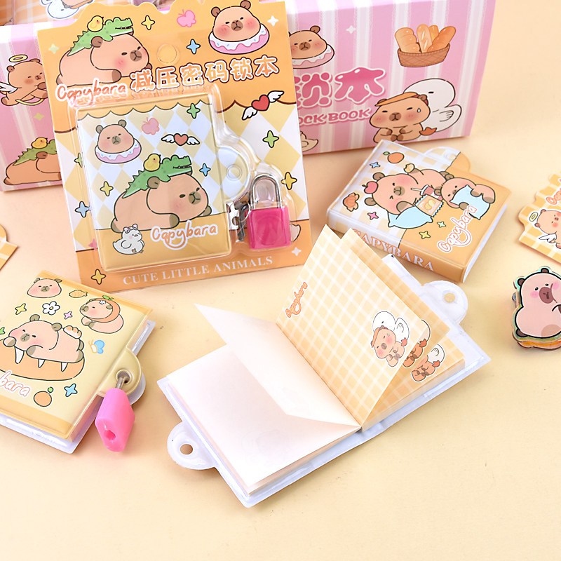 网红卡皮巴拉密码锁小本子便携式口袋本小锁子迷你笔记本高颜值可