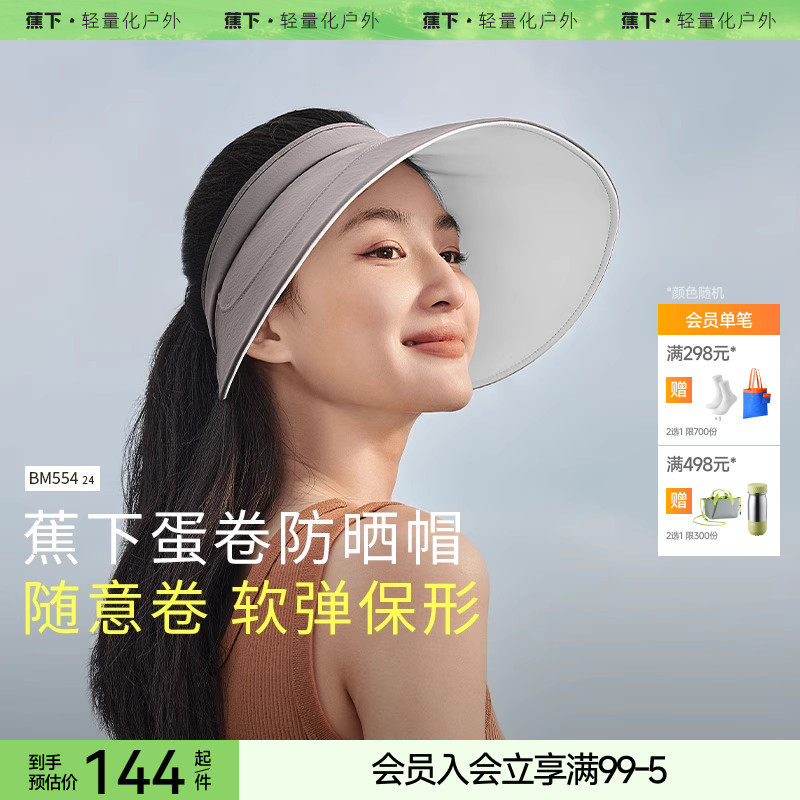 蕉下蛋卷帽BM55424遮阳帽空顶防晒帽黑胶女防紫外线户外遮光透气