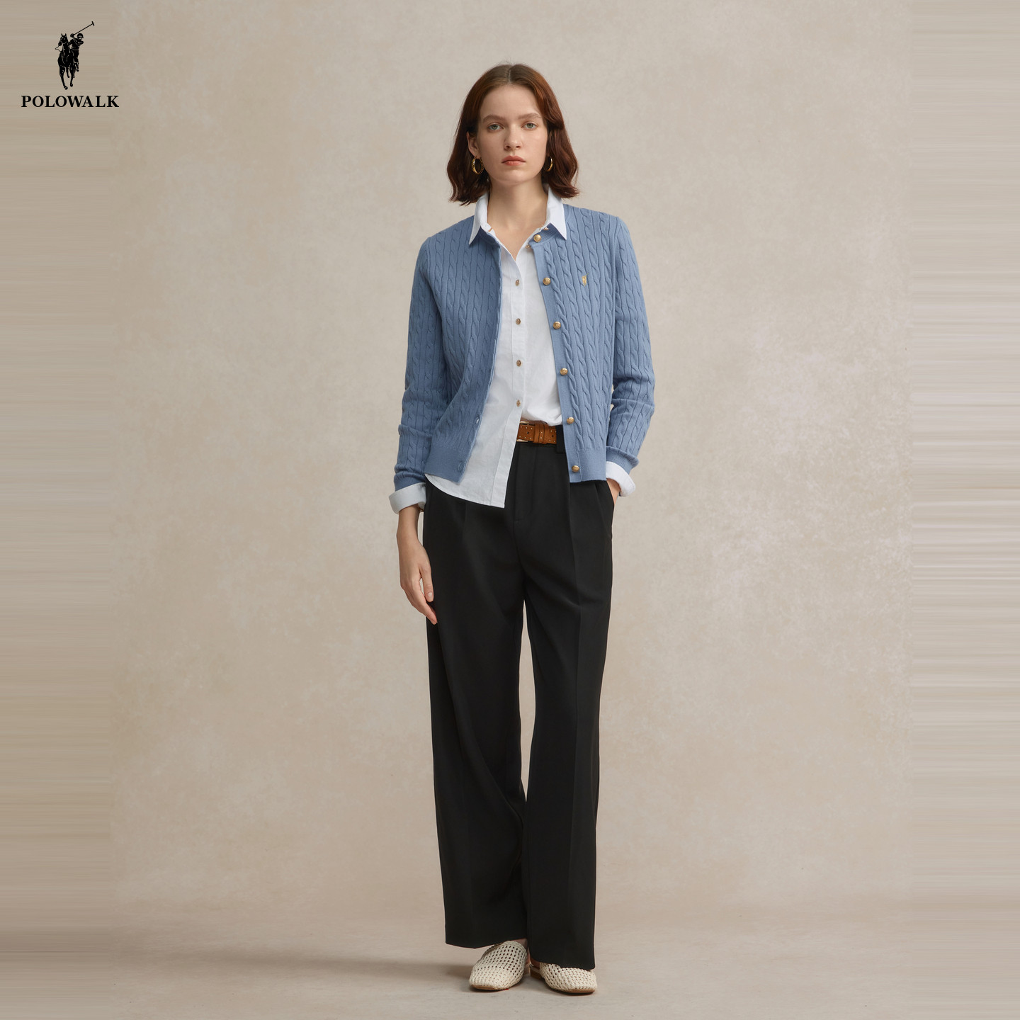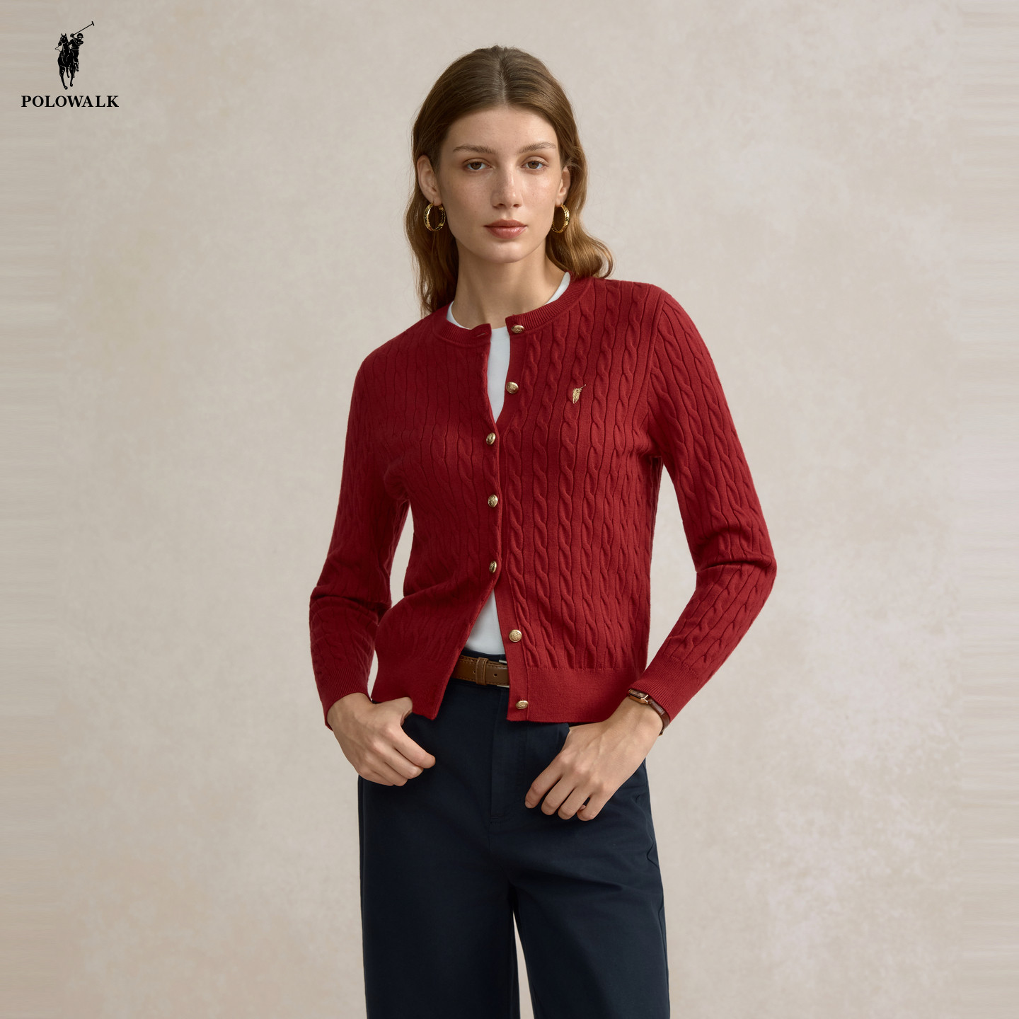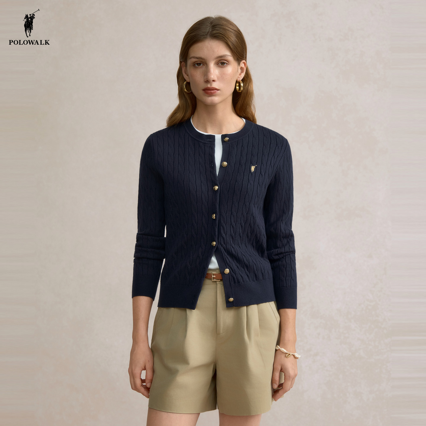 POLOWALK女装针织开衫外套2026春季新款老钱风毛衣针织外套上衣女